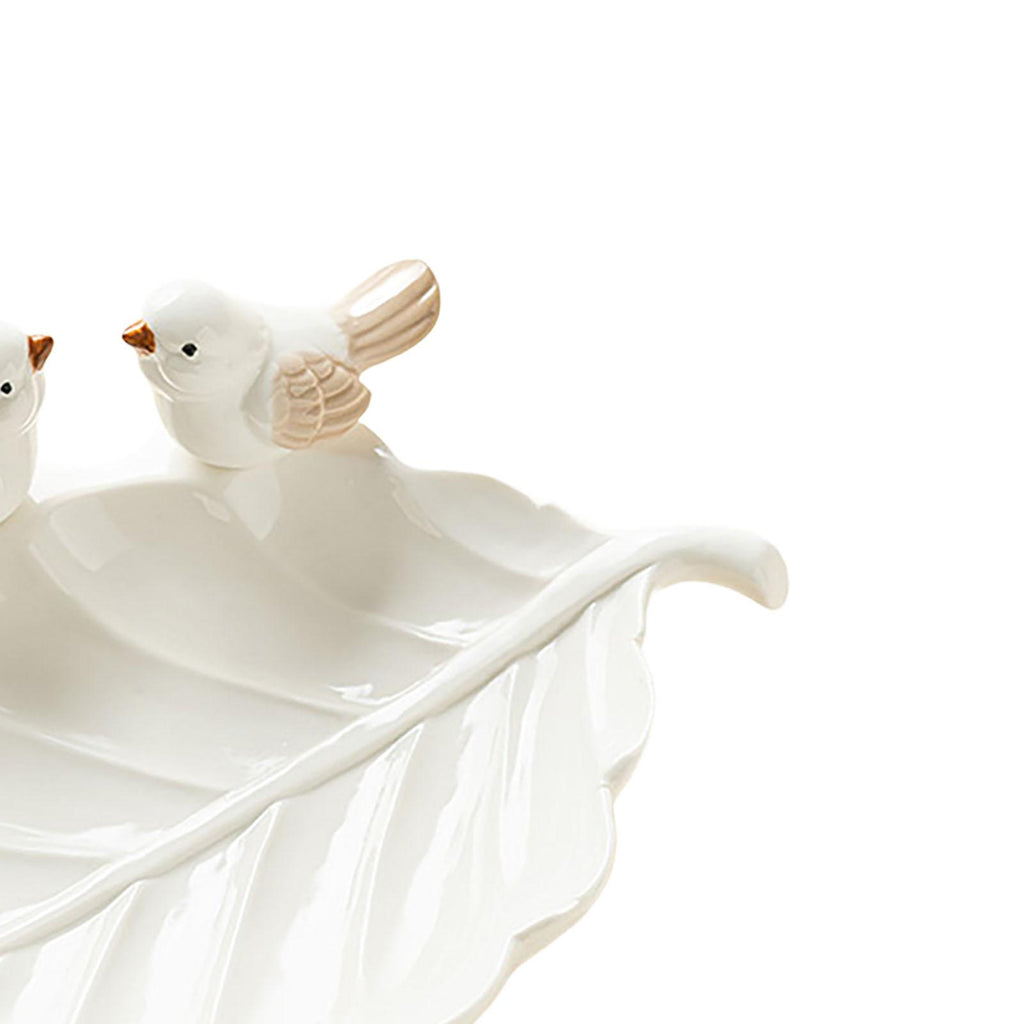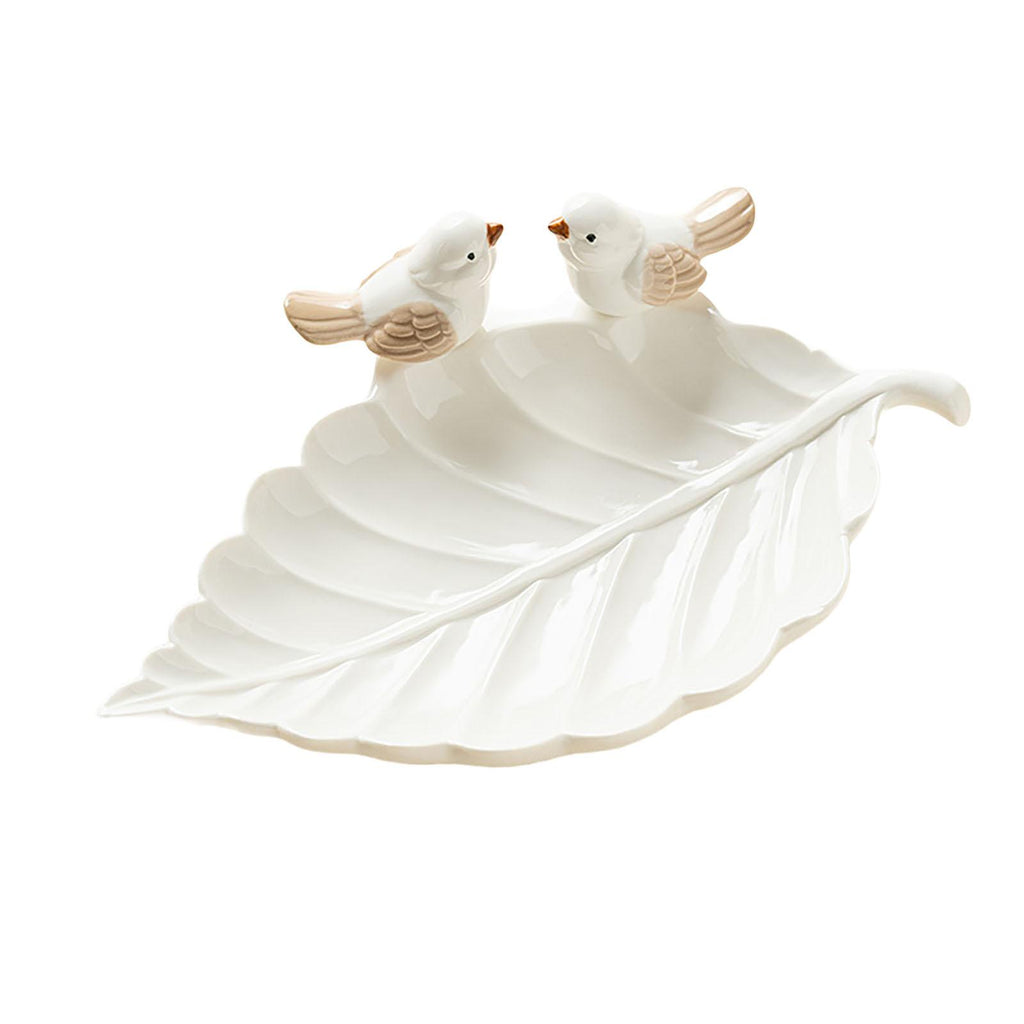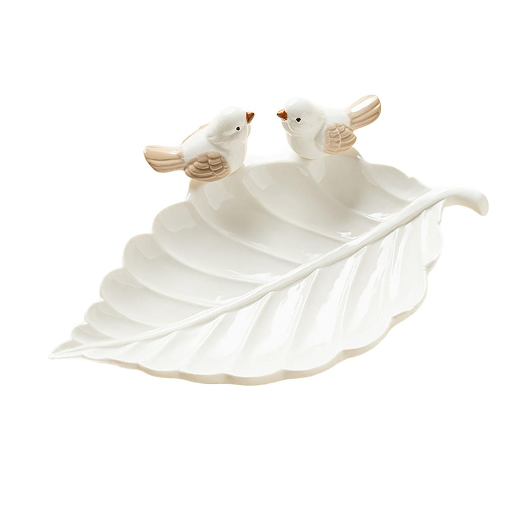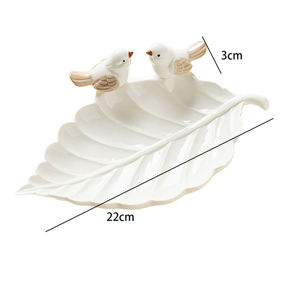 【Ceramic Material】Earrings Storage Plate Holder for Women is made of ceramic, fashionable leaf shape with two birds design, gloss glazed