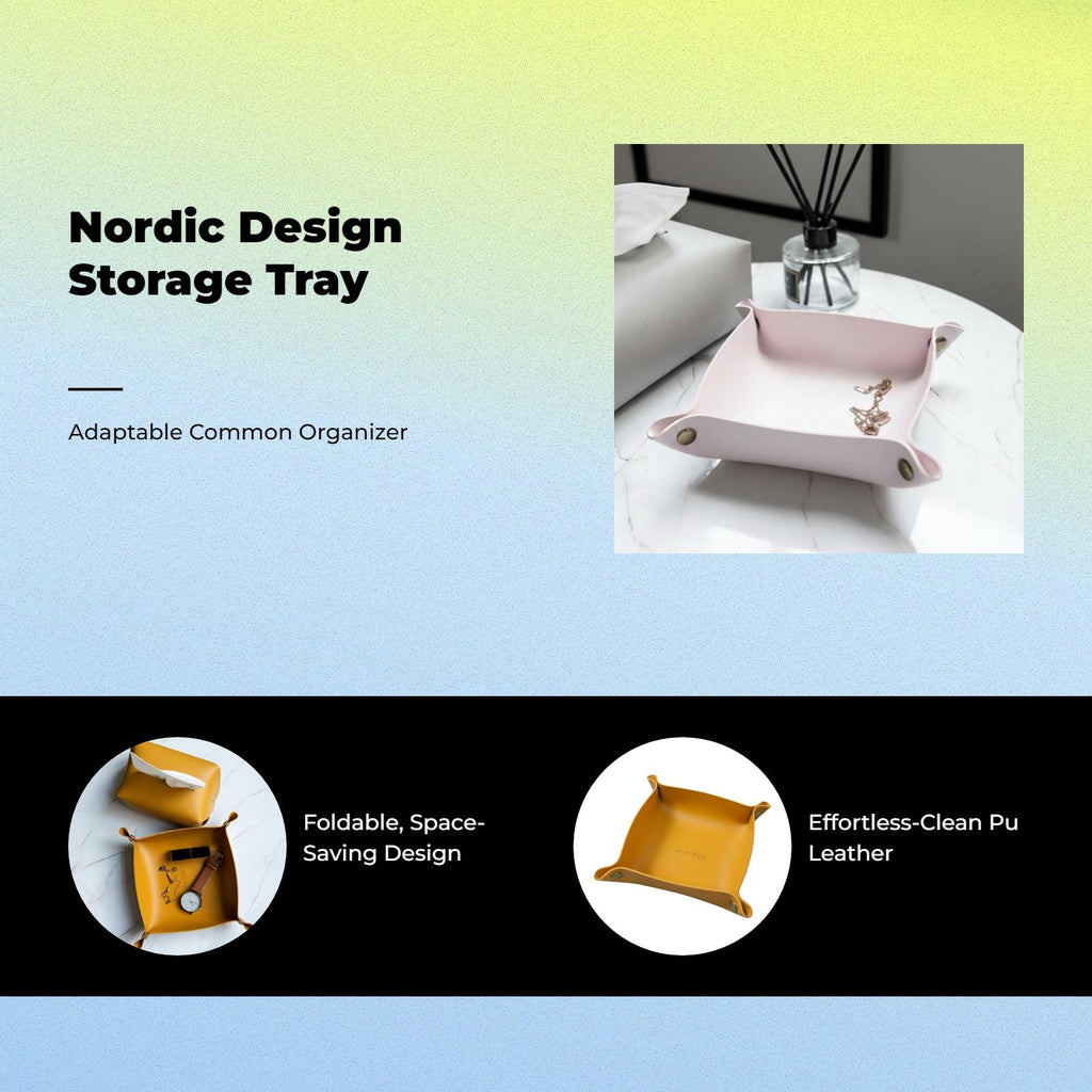 【Sturdy PU Leather Storage Box】This foldable desktop organizer tray features a Nordic design, making it perfect for storing jewelry, accessories, and cosmetics while keeping your space tidy and stylish.【Practical and Versatile】Perfect for use on desks, entryways, bedrooms, or offices, this organizer tray is suitable for a variety of settings including homes, dorms, hotels, and travel.【Large Capacity & Easy to Clean】The spacious layout accommodates multiple items, and the PU leather material can be wiped clean easily for long use.【Foldable & Portable】The foldable design allows for easy storage and portability, making it convenient to move or pack for travel.【Stylish Decorative Accent】Blending creative Nordic-inspired design with practical features, this tray serves as a decorative addition to any room while keeping your essentials organized.Specification: