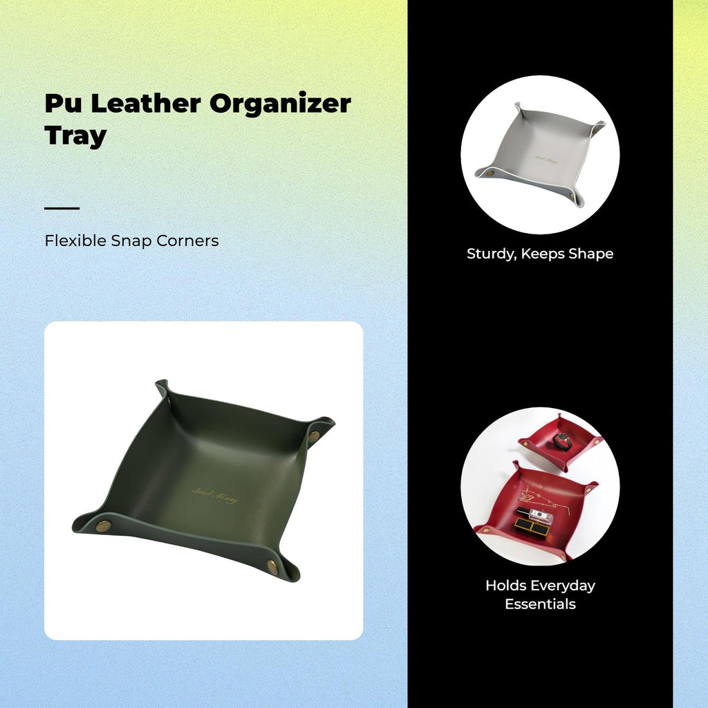 【Sturdy PU Leather Storage Box】This foldable desktop organizer tray features a Nordic design, making it perfect for storing jewelry, accessories, and cosmetics while keeping your space tidy and stylish.【Practical and Versatile】Perfect for use on desks, entryways, bedrooms, or offices, this organizer tray is suitable for a variety of settings including homes, dorms, hotels, and travel.【Large Capacity & Easy to Clean】The spacious layout accommodates multiple items, and the PU leather material can be wiped clean easily for long use.【Foldable & Portable】The foldable design allows for easy storage and portability, making it convenient to move or pack for travel.【Stylish Decorative Accent】Blending creative Nordic-inspired design with practical features, this tray serves as a decorative addition to any room while keeping your essentials organized.Specification: