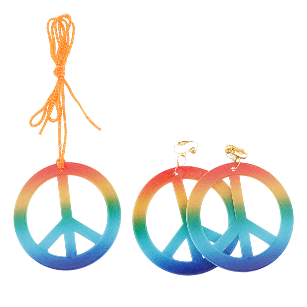 this earrings&necklace are complete the hippie look with tie dye shirts, baggy pants, a fringe vest, headband, unleash your inner hippie spirit with the ultimate hippy accessories kit
