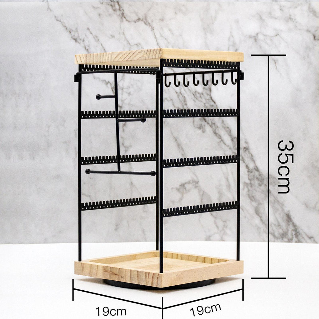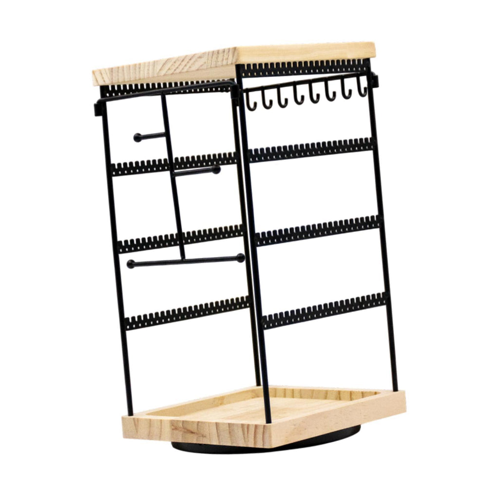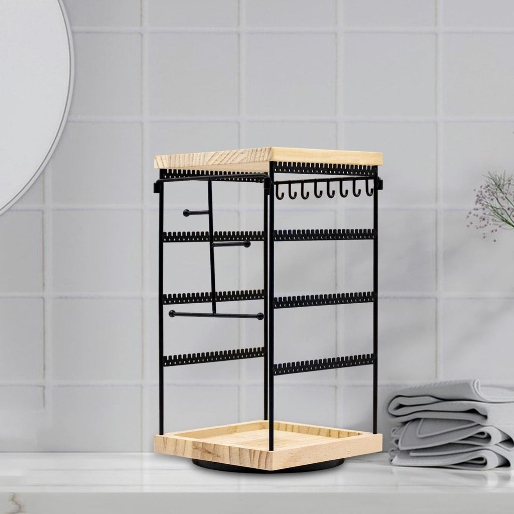 【Premium Materials】: Crafted from iron and wood, this jewelry storage rack combines durability with aesthetic . The sturdy iron frame ensures stability while the wooden base adds a touch of natural elegance