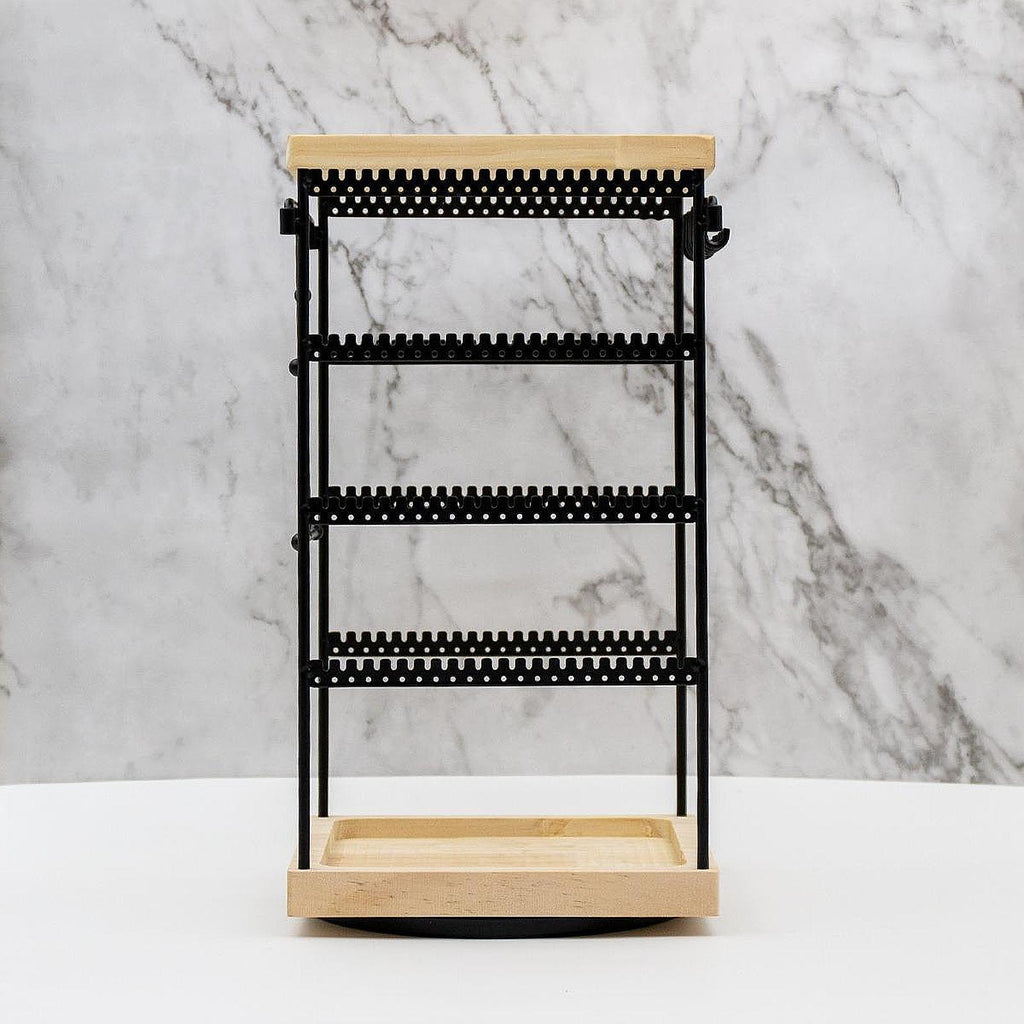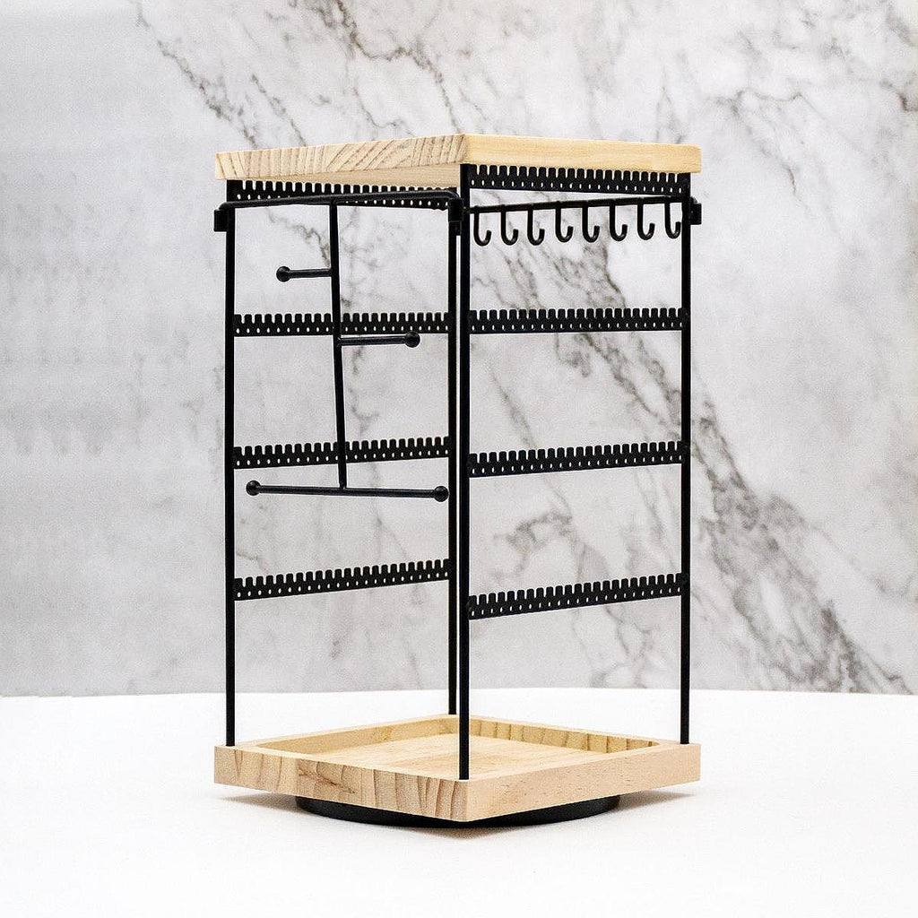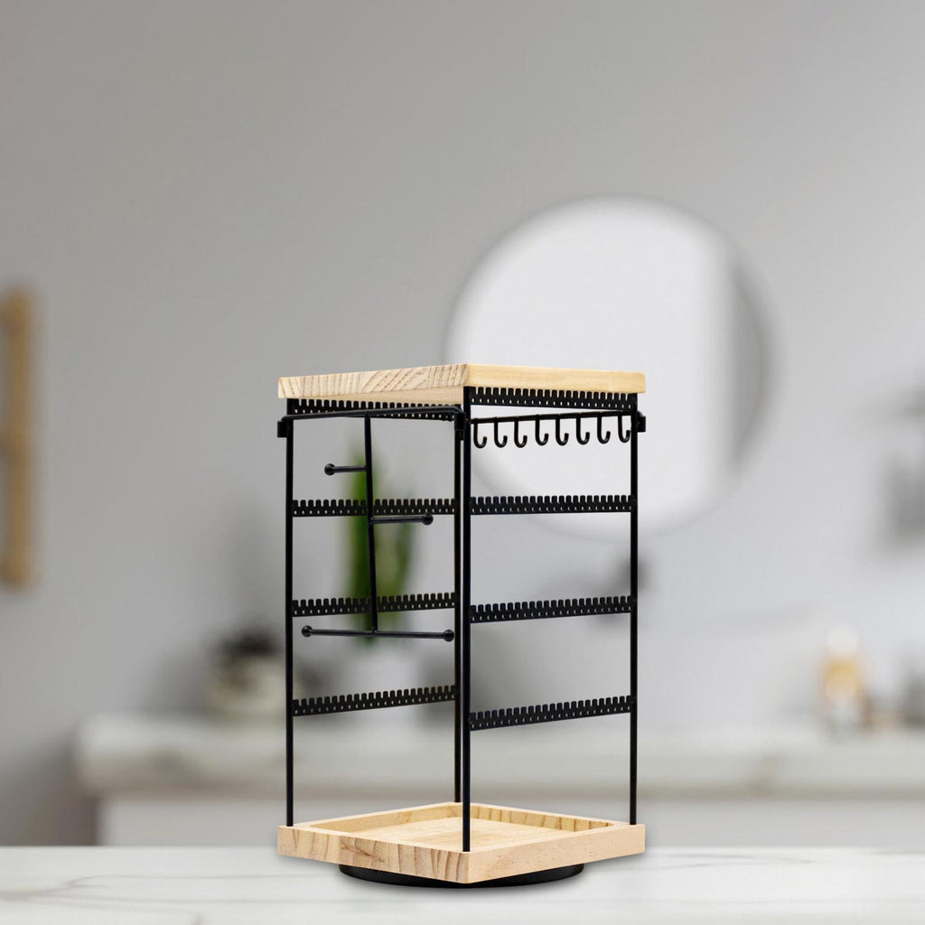 【Premium Materials】: Crafted from iron and wood, this jewelry storage rack combines durability with aesthetic . The sturdy iron frame ensures stability while the wooden base adds a touch of natural elegance