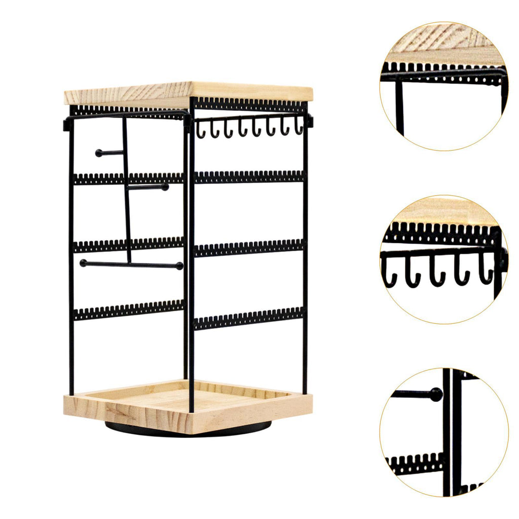 【Elegant Design & Versatile Use】: This rotatable wooden jewelry display stand features a sophisticated square design, great for showcasing your earrings, necklaces, pendants, and bracelets