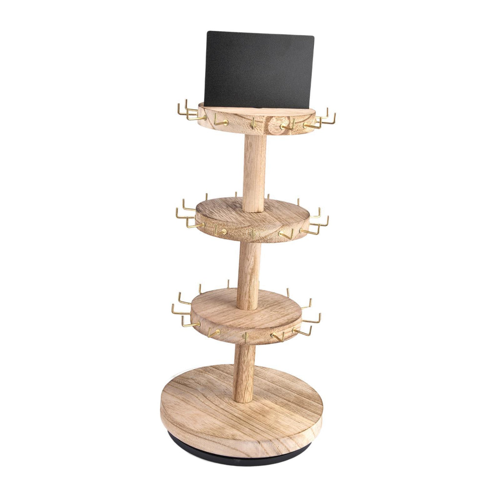 【Premium Materials】: Crafted from iron and wood, this jewelry storage rack combines durability with aesthetic. The wooden base adds a touch of natural elegance