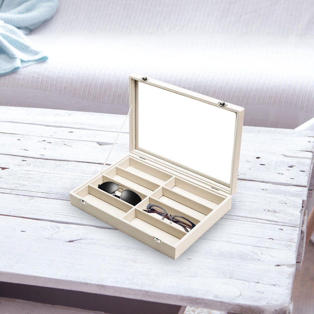 Maxbell Sunglasses Show Tray 8 Grids Modern Glasses Case for Jewelry Beads Necklaces Beige Yellow