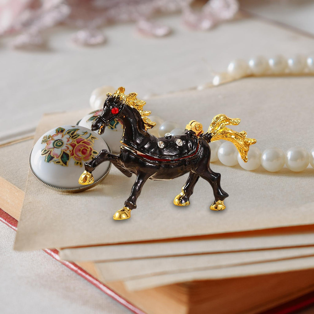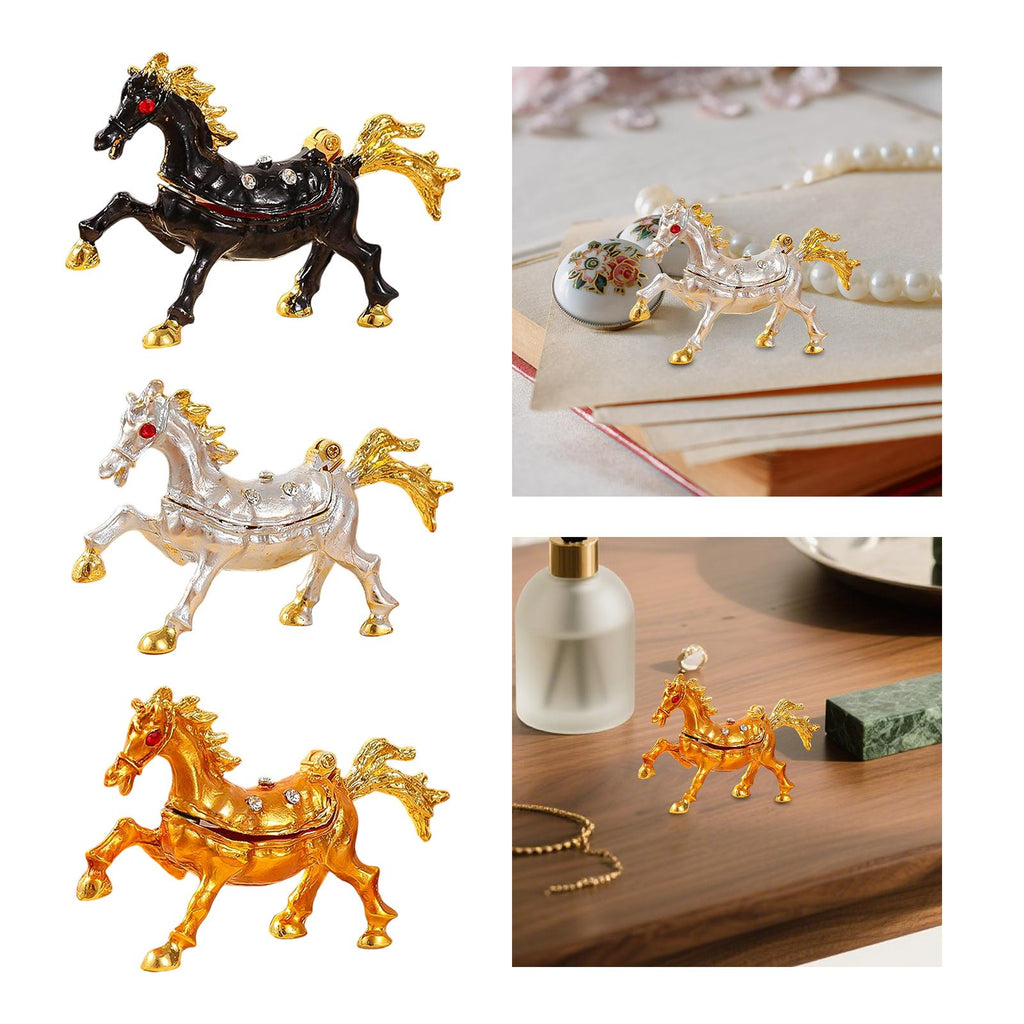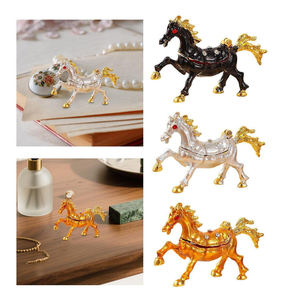 - 【Hinged Horse Figurine Jewelry box】: Jewelry Box with small storage space, can store earrings and rings, smooth opening and closing, convenient storage