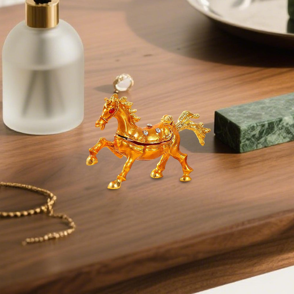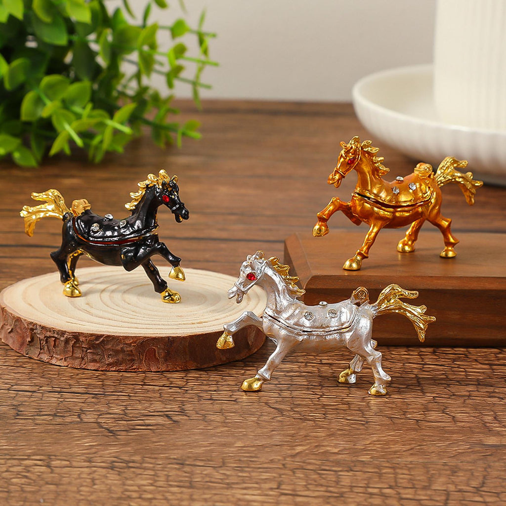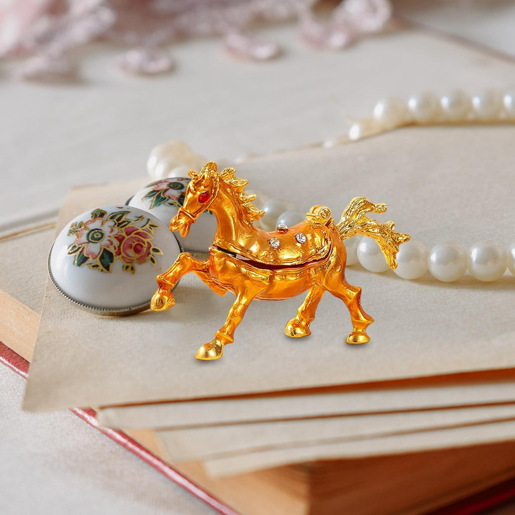 - 【Hinged Horse Figurine Jewelry box】: Jewelry Box with small storage space, can store earrings and rings, smooth opening and closing, convenient storage