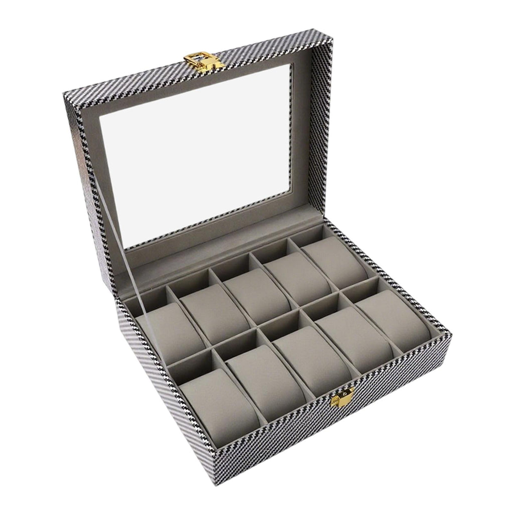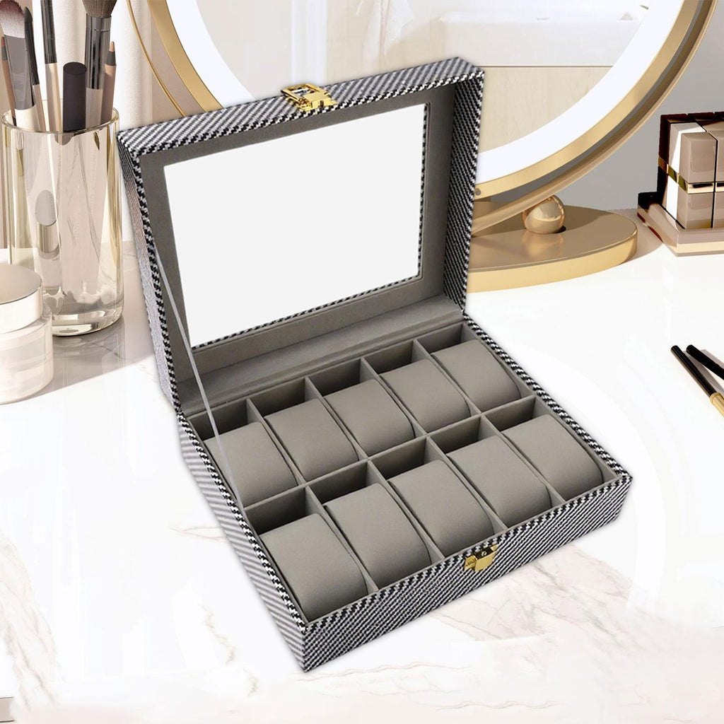 - 【Secure Metal Lock】: Equipped with a sturdy metal lock, watch display case provides reliable security for your watches, giving you peace of mind that your collection is wellprotected