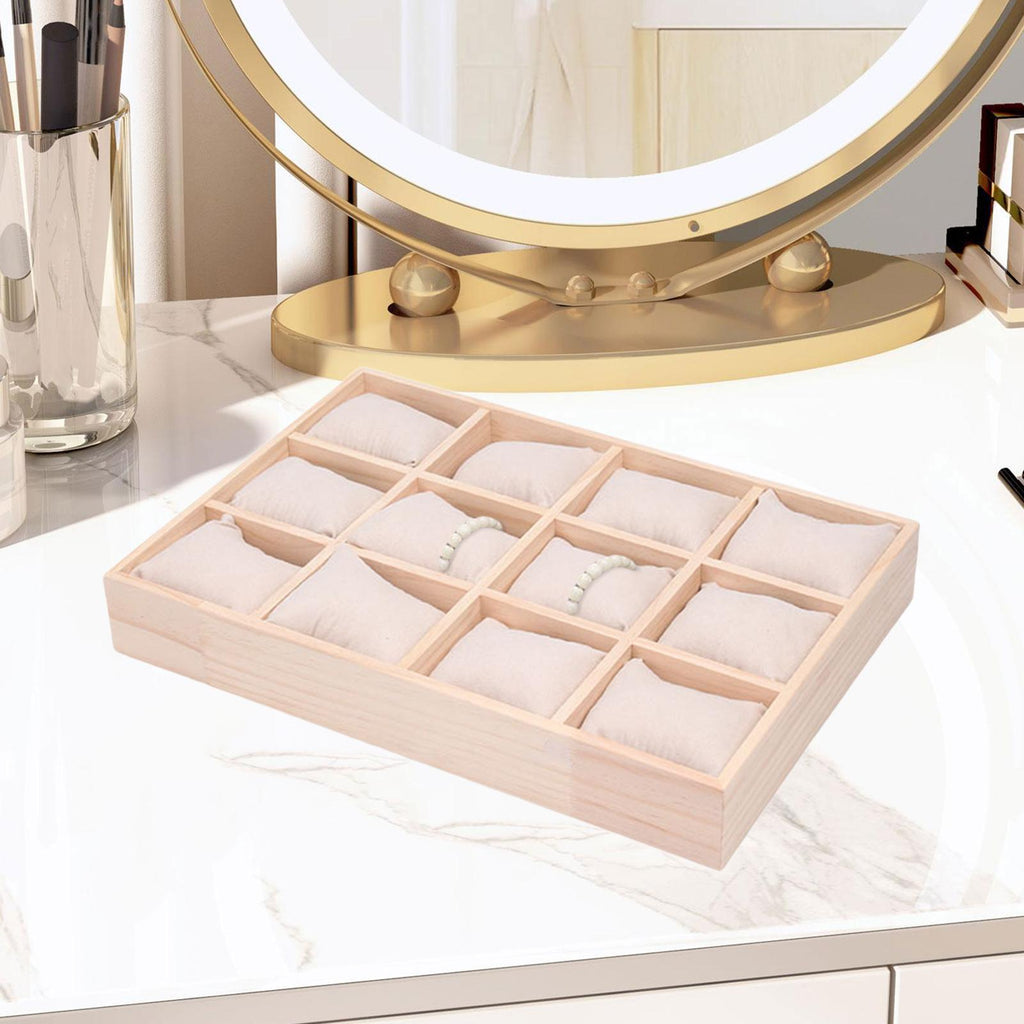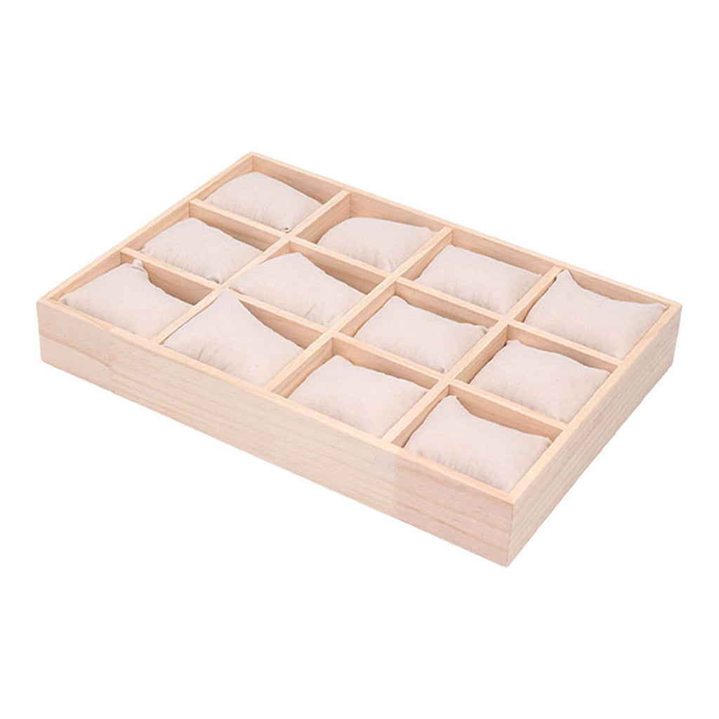 Maxbell Watch Jewelry Box Father Day Gifts Multifunctional 12 Slot Watch Travel Case Beige White Pillow