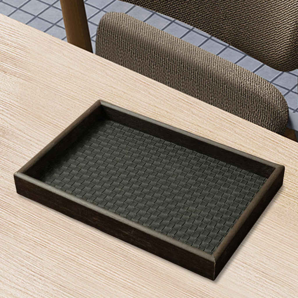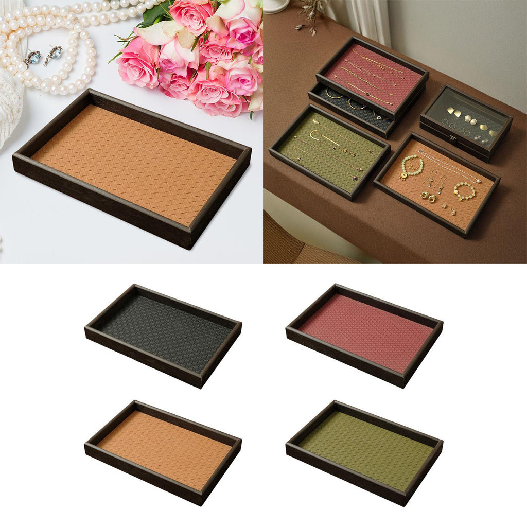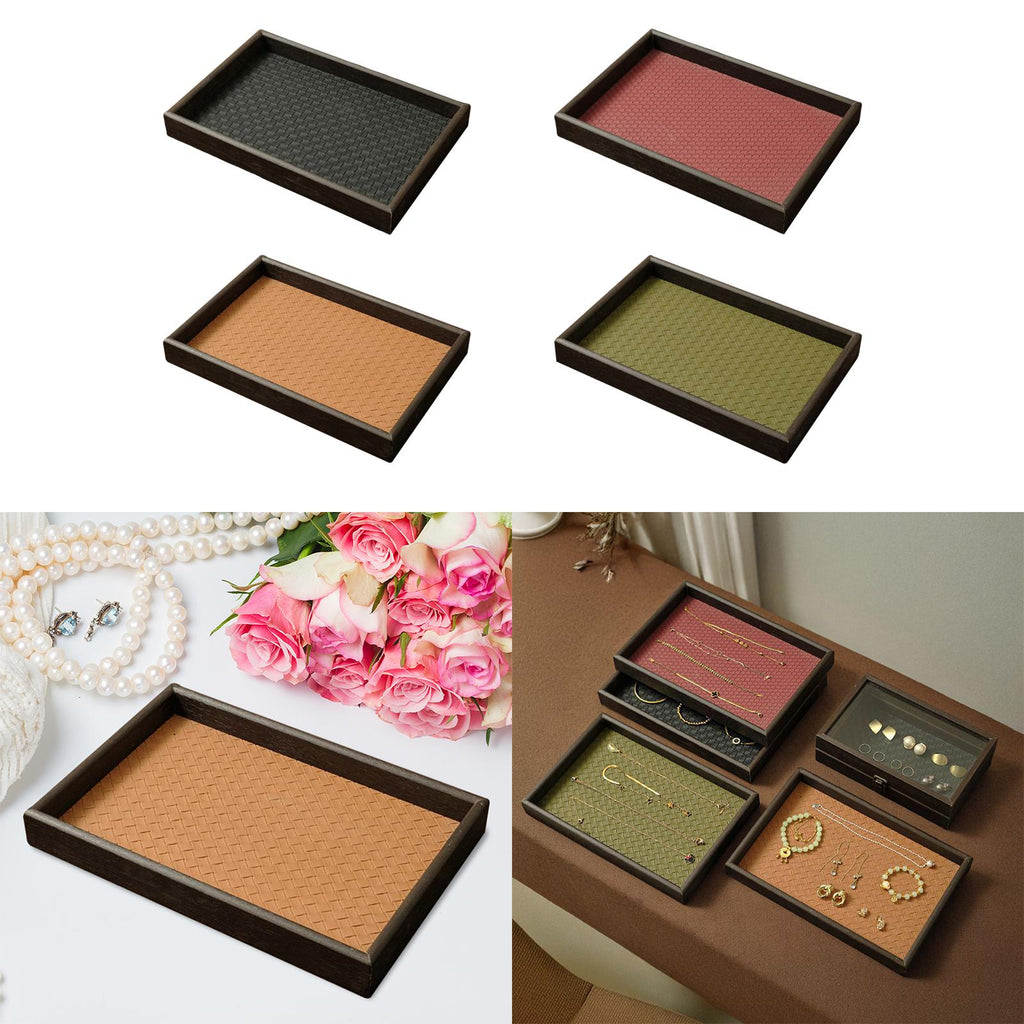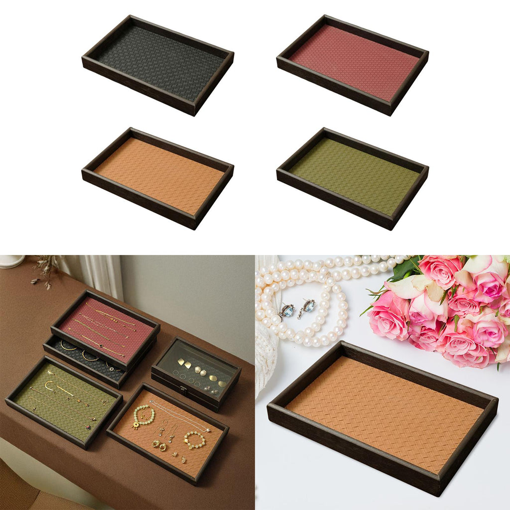 Maxbell Wood PU Leather Organizer Holder Flat Jewelry Display Tray Black