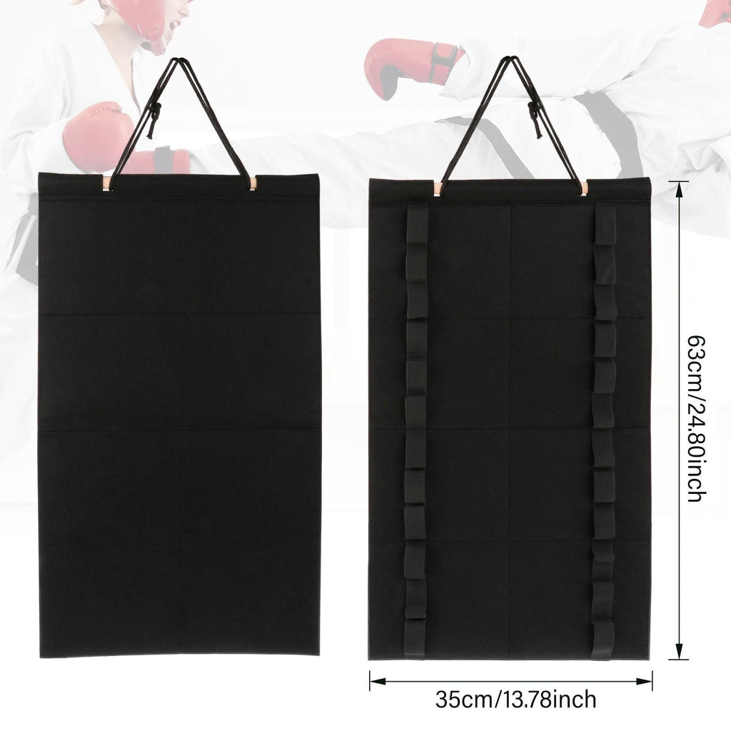 【PREMIUM MATERIAL】This martial arts belt organizer is made of premium felt cloth material, very durable, and sturdy. Size 35cmx63cm/13.78inchx24.80inch.