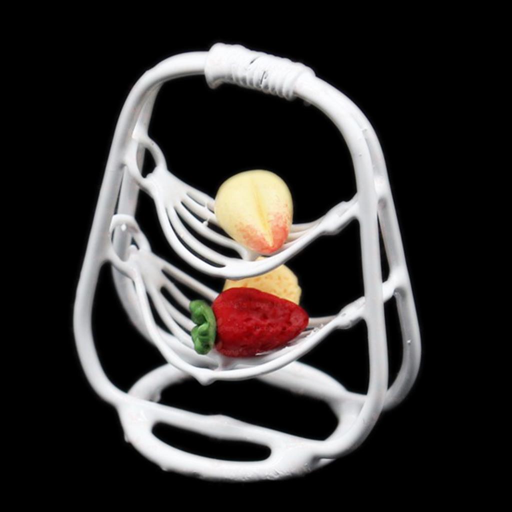 Max 1/12 Dollhouse Miniature Metal 2-Tier Fruit Basket Stand Kitchen Accs White