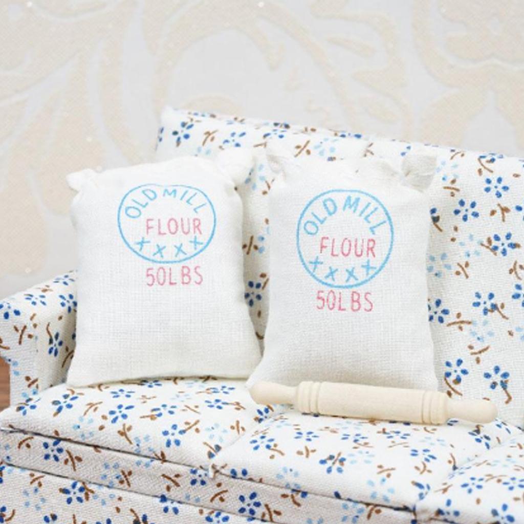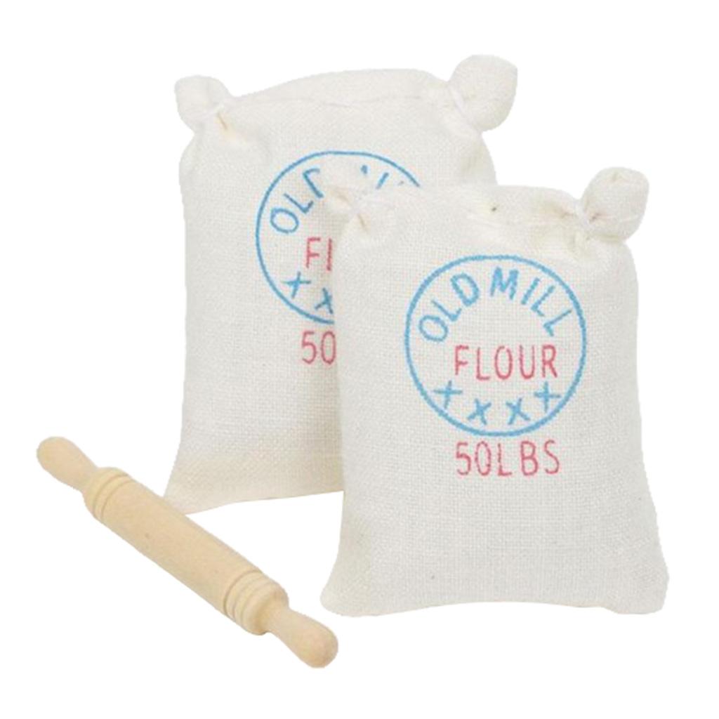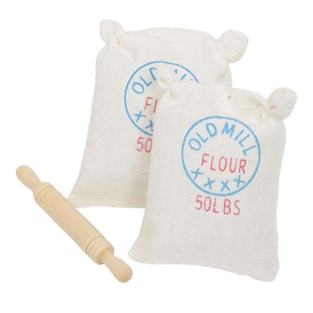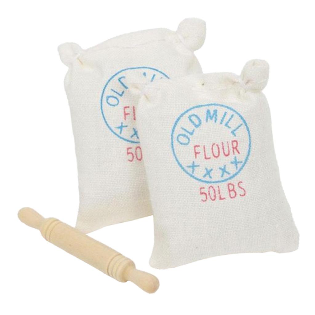 Maxbell 1/12 Dollhouse Miniature Two Bags Flour And Rolling Pin Toy for Kitchen