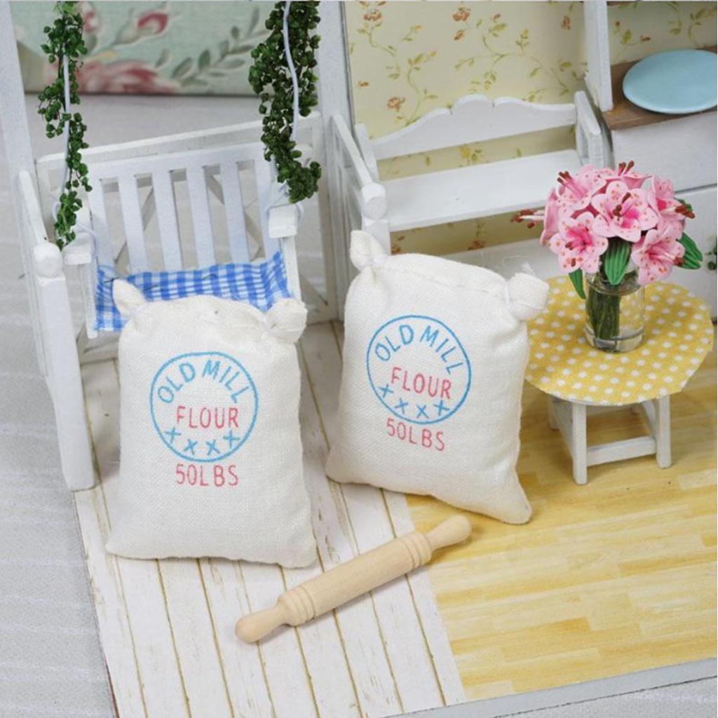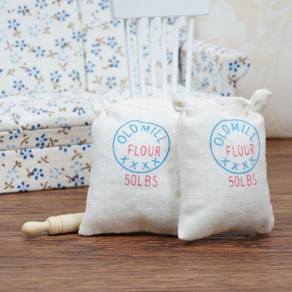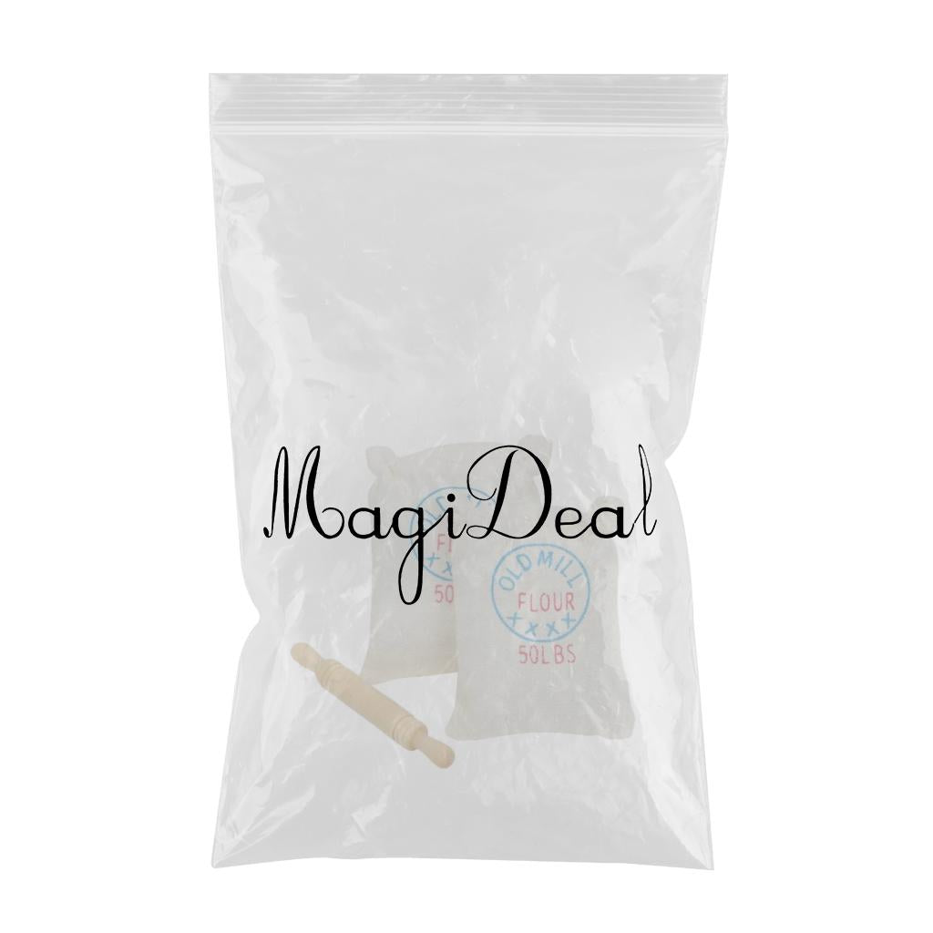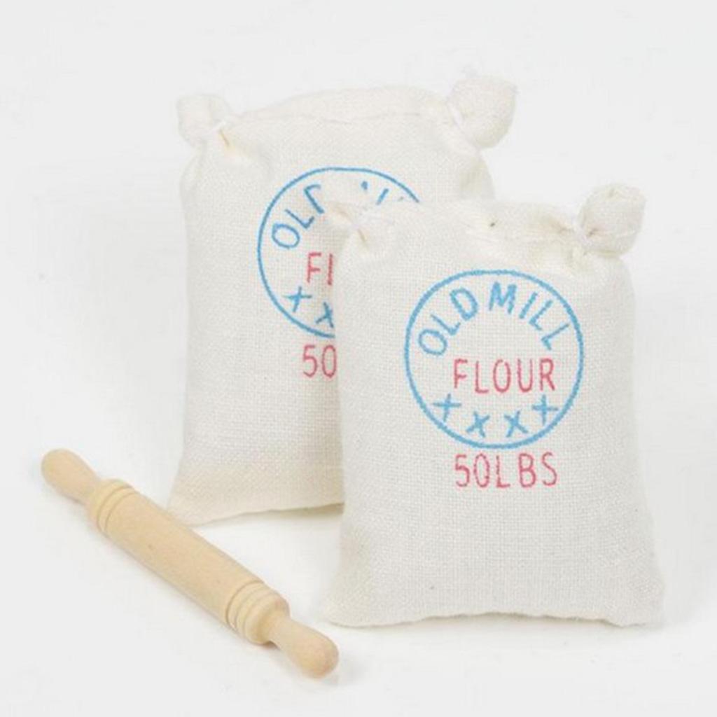 Maxbell 1/12 Dollhouse Miniature Two Bags Flour And Rolling Pin Toy for Kitchen