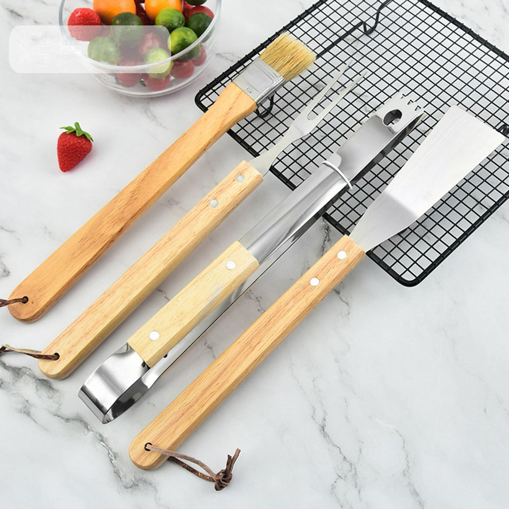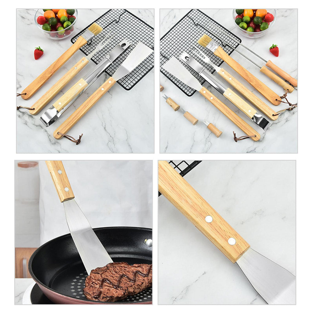 High Quality Stainless Steel: Grill tool set is made up of high quality stainless steel and wood heat resistant and durable.