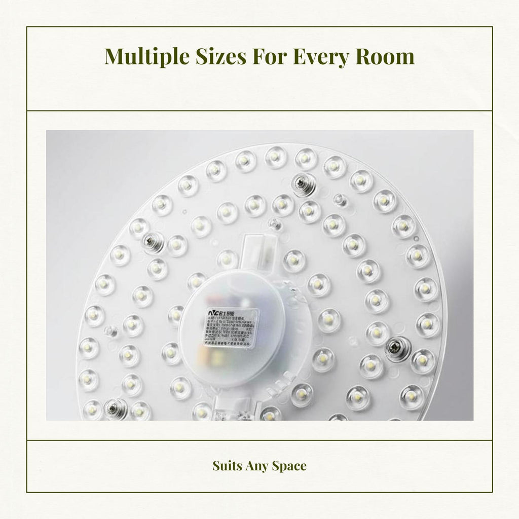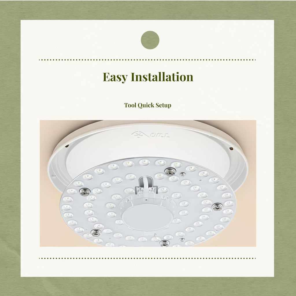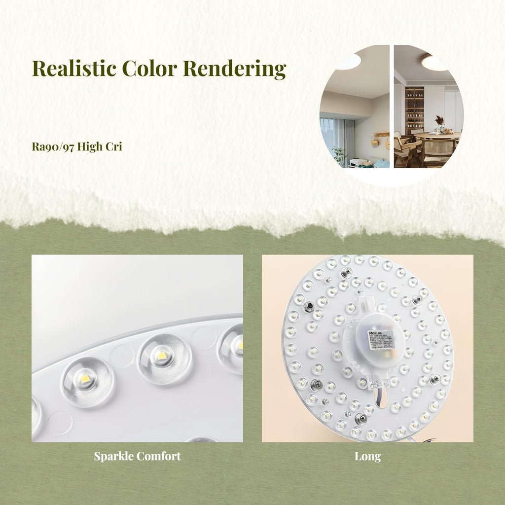 【Energy-Efficient light-emitting diode Ceiling Light Module】This 12-inch round light-emitting diode ceiling light module provides bright lighting for bedrooms, kitchens, and living rooms, delivering energy-saving performance and long reliability.【Dimmable & Multi-Functional Design】With adjustable brightness and multiple color temperature choices (3000K-4000K-6500K), this module is perfect for a variety of indoor settings such as offices, closets, and hallways.【Easy Installation & Replacement】Its design ensures quick installation and straightforward replacement, making it a smart choice for home upgrades and renovations.【 vision Protection】Constructed with fire-resistant materials and a frosted cover, this light-emitting diode module offers high CRI (>85) lighting that protects your visions and provides comfortable lighting.【Versatile Application & Cost-Effective】Perfect for flush mount ceiling lights, cabinets, and under-counter lighting, this module delivers both practicality and value for common home lighting needs.Specification: