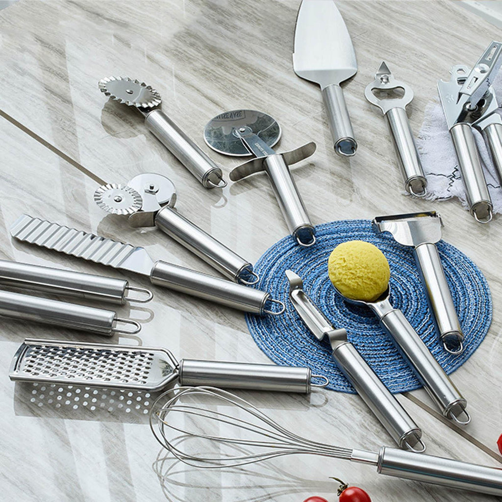 Inlcude pizza peel, pizza wheel, pizza cutter, triangle cutter etc, fully functional, easy to meet pizza making.