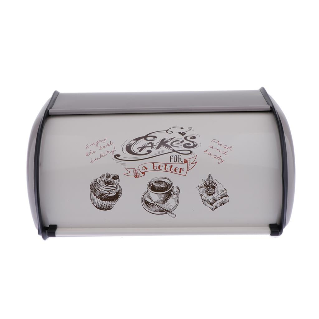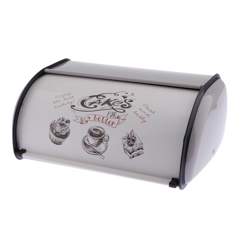 Max 1Pc Bread Storage Container Keeper Iron Bread Bin Box with Roll Top Lid,Gray