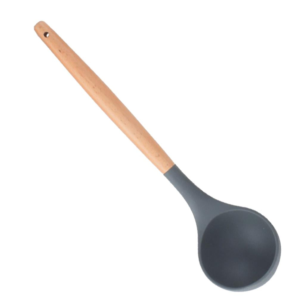 Premium 12 types of kitchen utensils with durable silicone heads and smooth wood handle, BPA free, food grade, odor free.