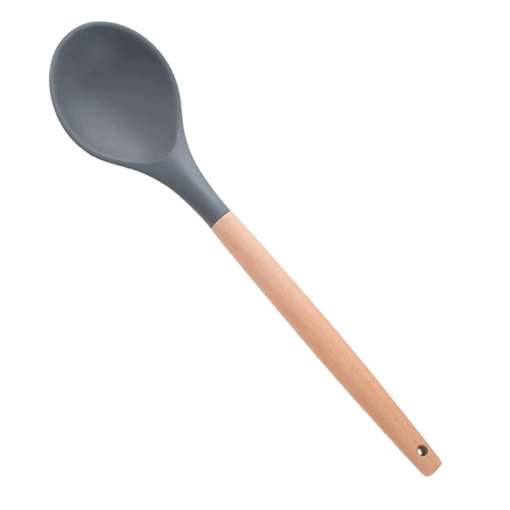 Premium 12 types of kitchen utensils with durable silicone heads and smooth wood handle, BPA free, food grade, odor free.