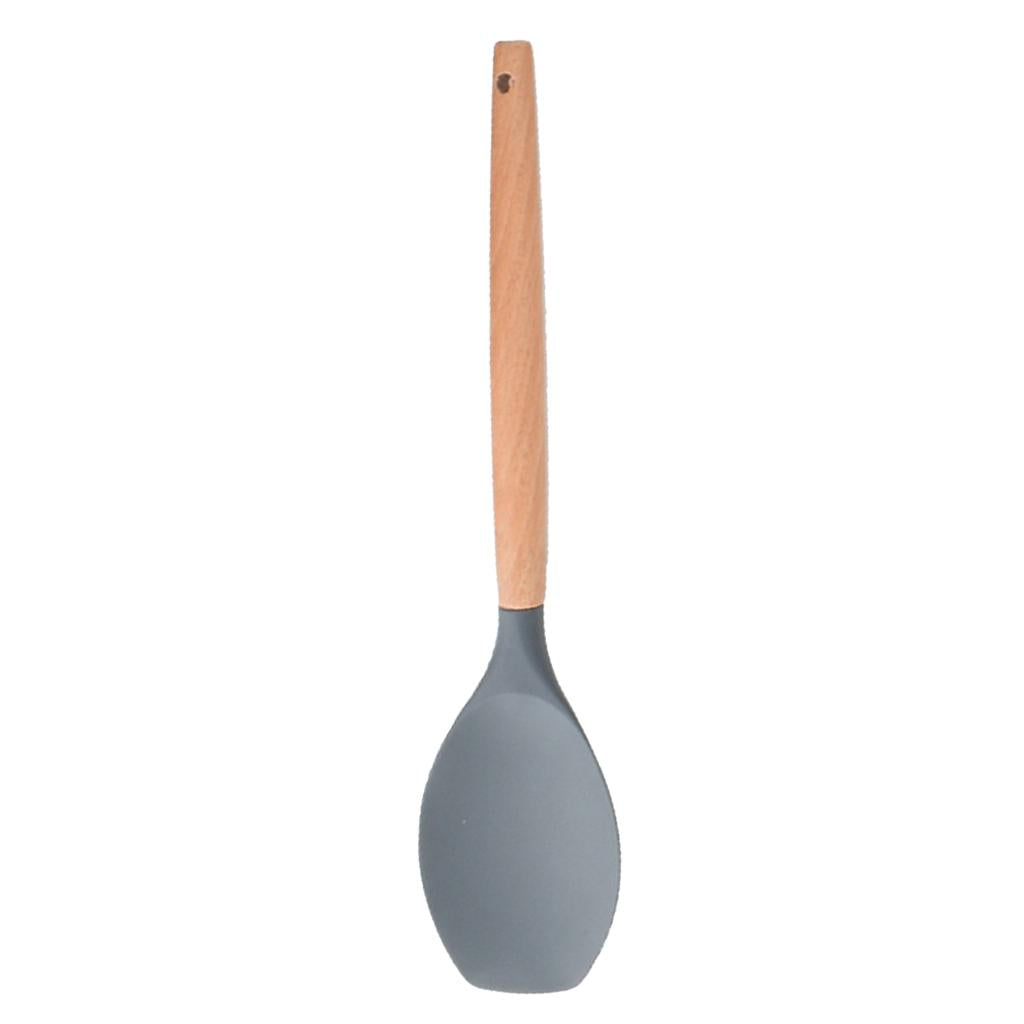 Premium 12 types of kitchen utensils with durable silicone heads and smooth wood handle, BPA free, food grade, odor free.