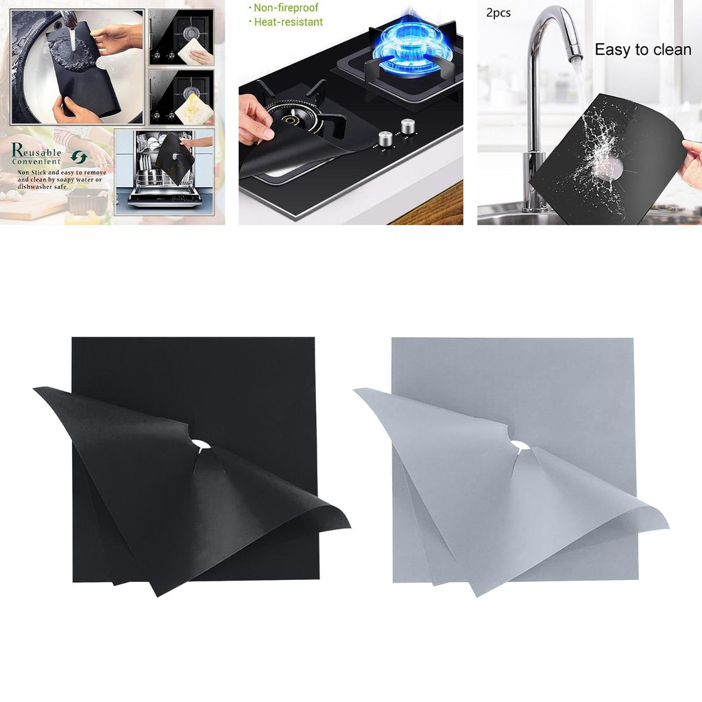 Maxbell 2 Pieces Stove Burner Covers Easy to Clean Reusable for Cooking Kitchen Black