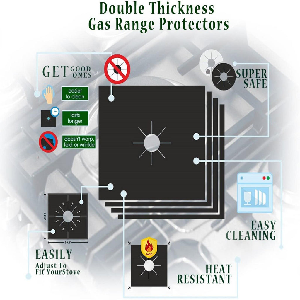 KEEP YOUR STOVE& Kitchen Cleaning: This reusable stove liners are PTFE coated so easy to wipe off dripping sauces, burnt food, greasy oils and protect your gas stovetop burner. Perfect fit Your Stove. Precut center allows you to adjust to fit your gas burner.