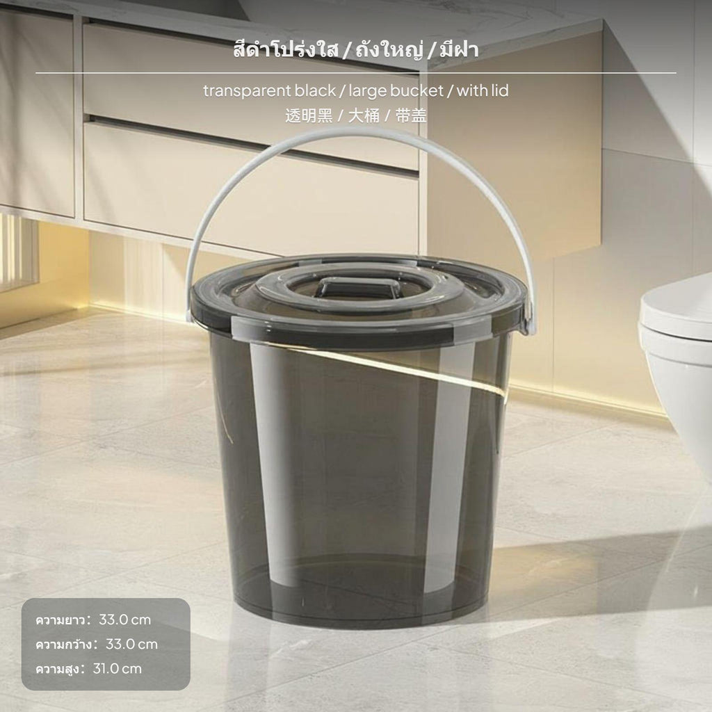 【sturdy Thickened Design】 This 20L transparent water container features a thickened PP construction for enhanced durability and collision toughness, making it perfect for common storage and cleaning needs.【Convenient Lid & Ergonomic Handle】 Equipped with a tight-fitting lid to keep water clean and particlescomplimentary, and a widened curved handle for comfortable carrying, perfect for home and dormitory use.【Multi-Functional & Space-Saving】 Suitable for washing, bathing, and general storage, this container supports stackable storage to maximize space effectiveness in any living environment.【High Temperature Resistant & Easy to Clean】 The container can safely hold hot water without deformation, and its polished surface allows for easy cleaning and maintenance.【Random Color Selection】 Available in multiple transparent hues (orange, navy, olive, gray, black), shipped randomly to match various home styles.
