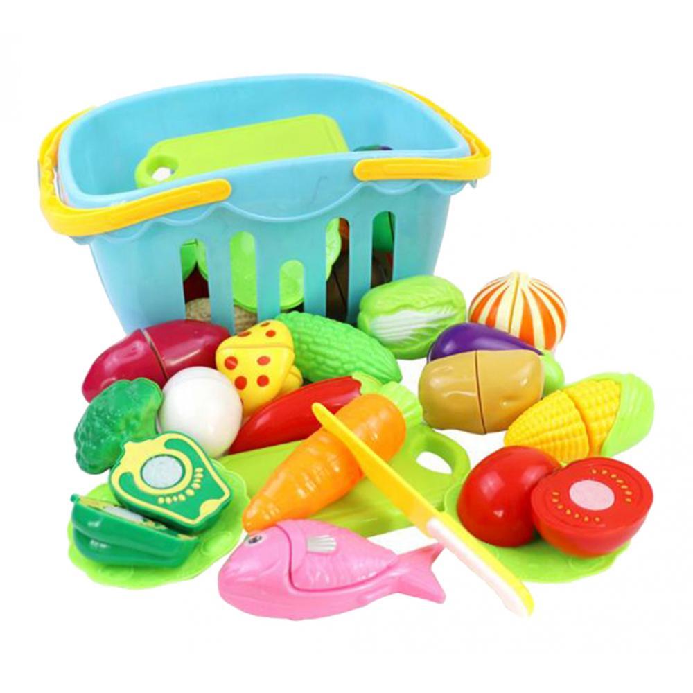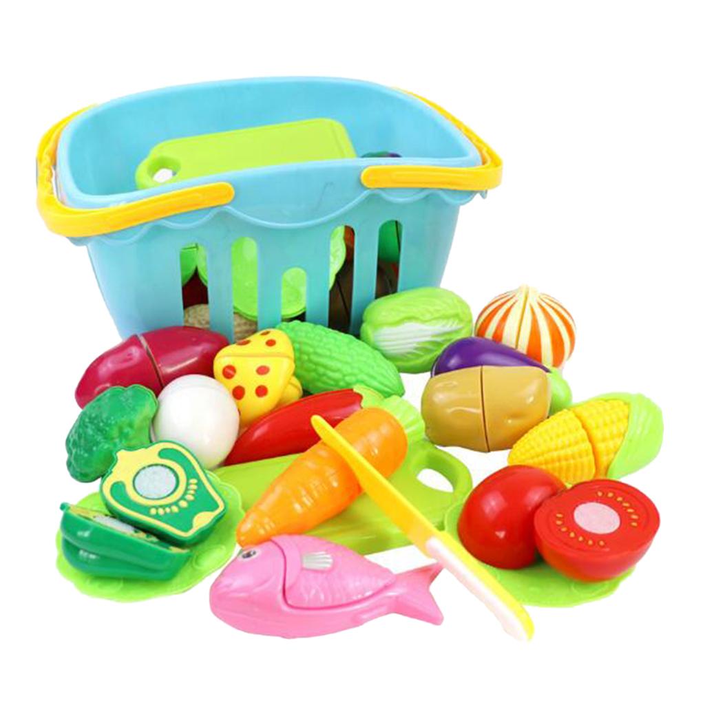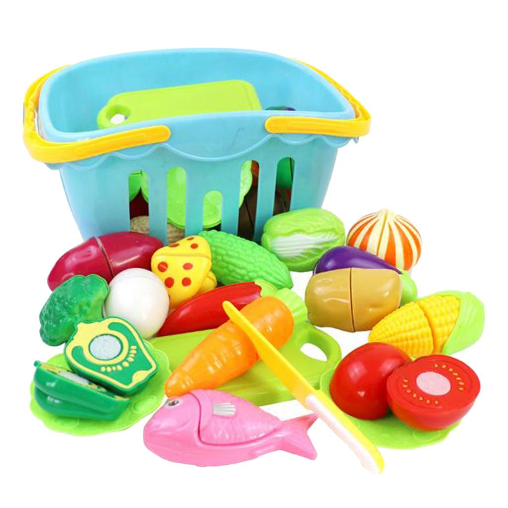 Maxbell 20pc Simulated Fruits and Vegetables for Kids Kitchen Pretend Play Set Blue
