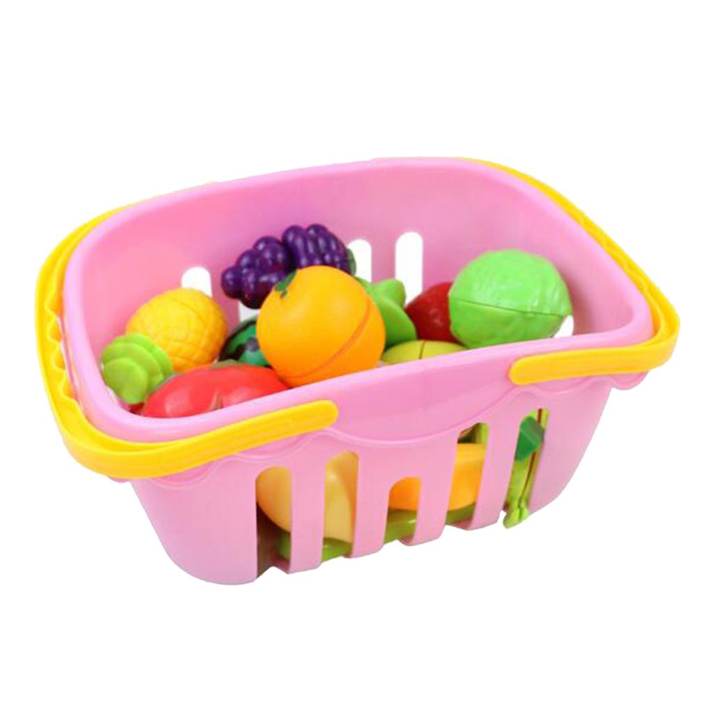 Maxbell 20pc Simulated Fruits and Vegetables for Kids Kitchen Pretend Play Set Pink