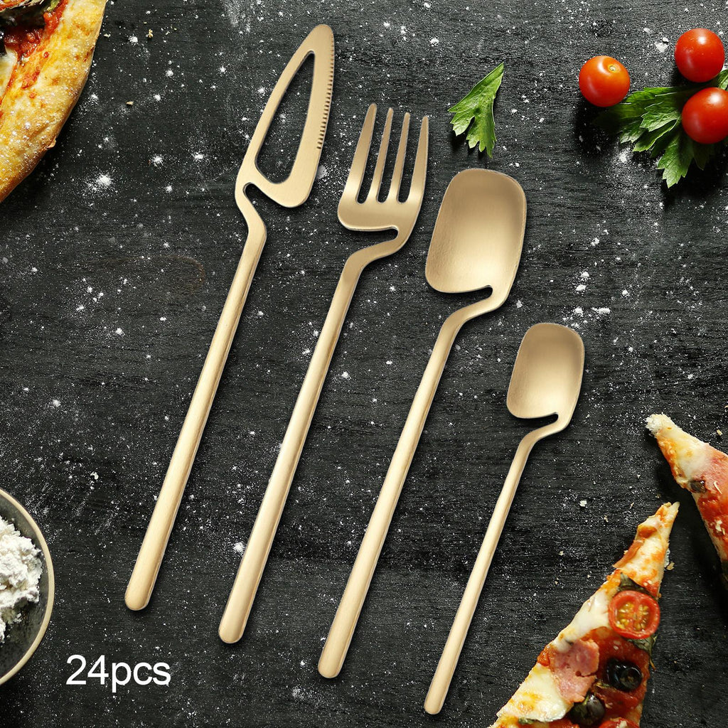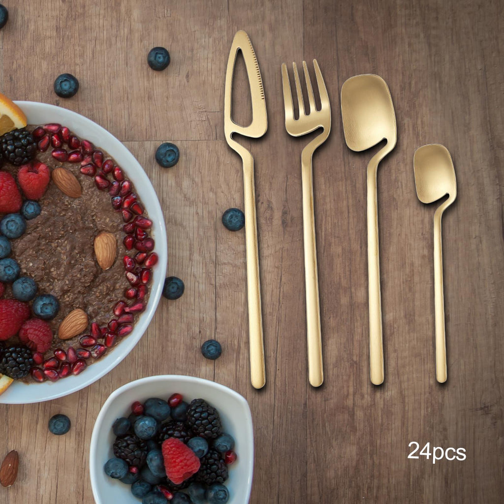 Maxbell 24x Stainless Steel Cutlery Set Kitchen Utensil Bar Tool for Golden