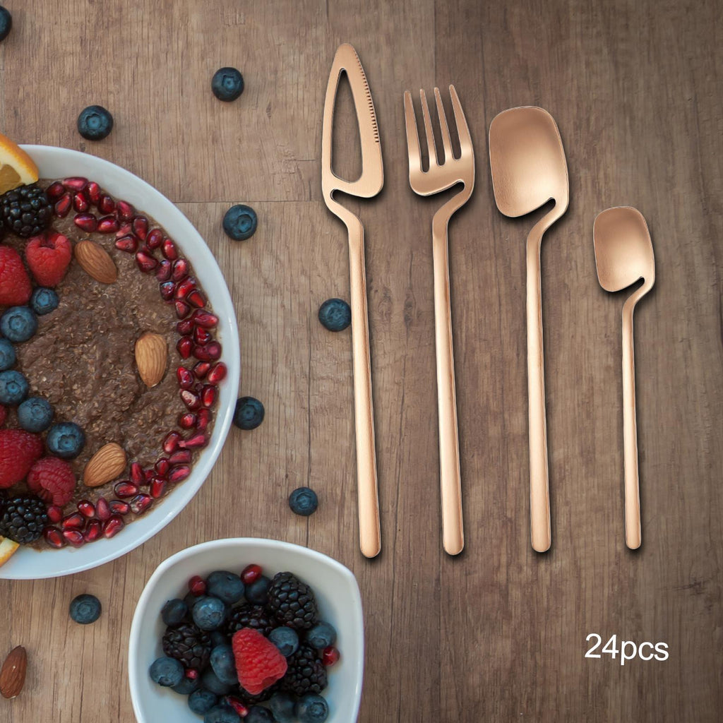 Maxbell 24x Stainless Steel Cutlery Set Kitchen Utensil Bar Tool for Pink Golden