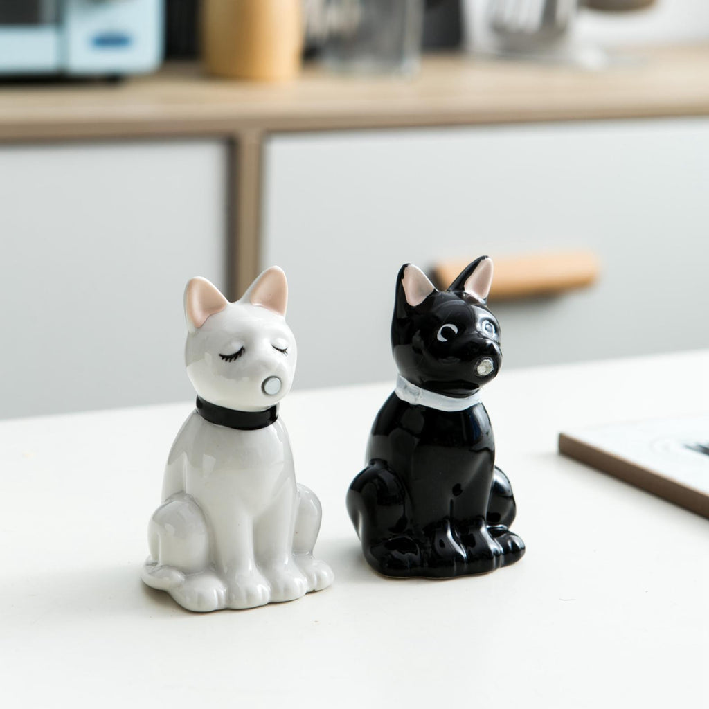 【Creative Design】: This Ceramic Seasoning Jar Set features a unique and creative design of adorable dog-shaped pepper and salt shakers, adding a touch of fun to your kitchen decor.