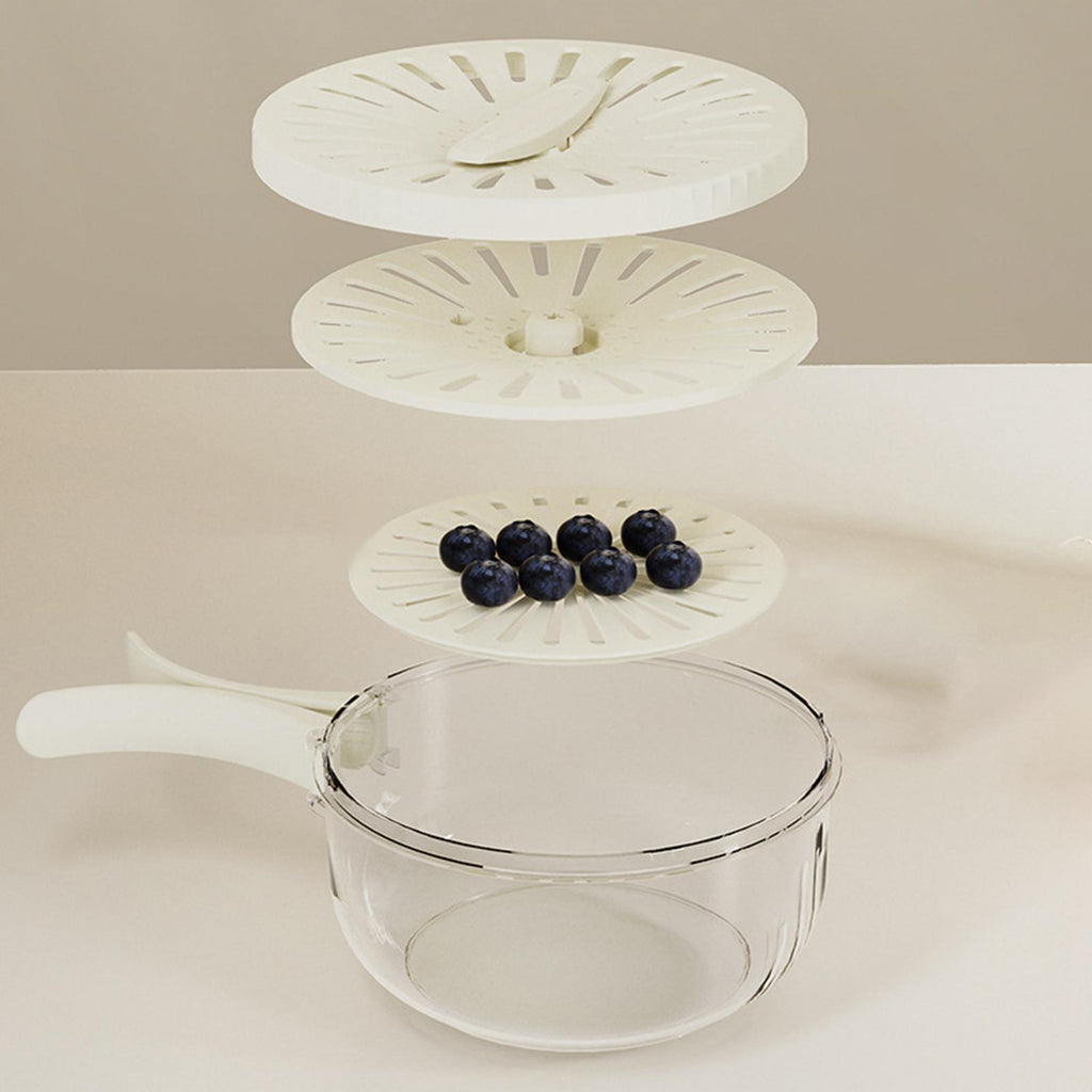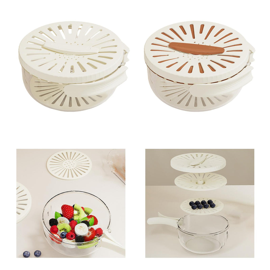 【Draining】: The Food Storage Container lid has a hollow net design with a knob for opening or closing, making fruit and vegetable washing and draining more convenient. The bottom drain pan design ensures that fruits do not soak in water.