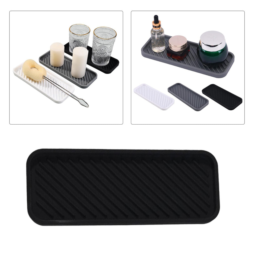 Maxbell 2xKitchen Organizer Tray Quick Drying Waterproof for Kitchen Makeup Shampoo Black