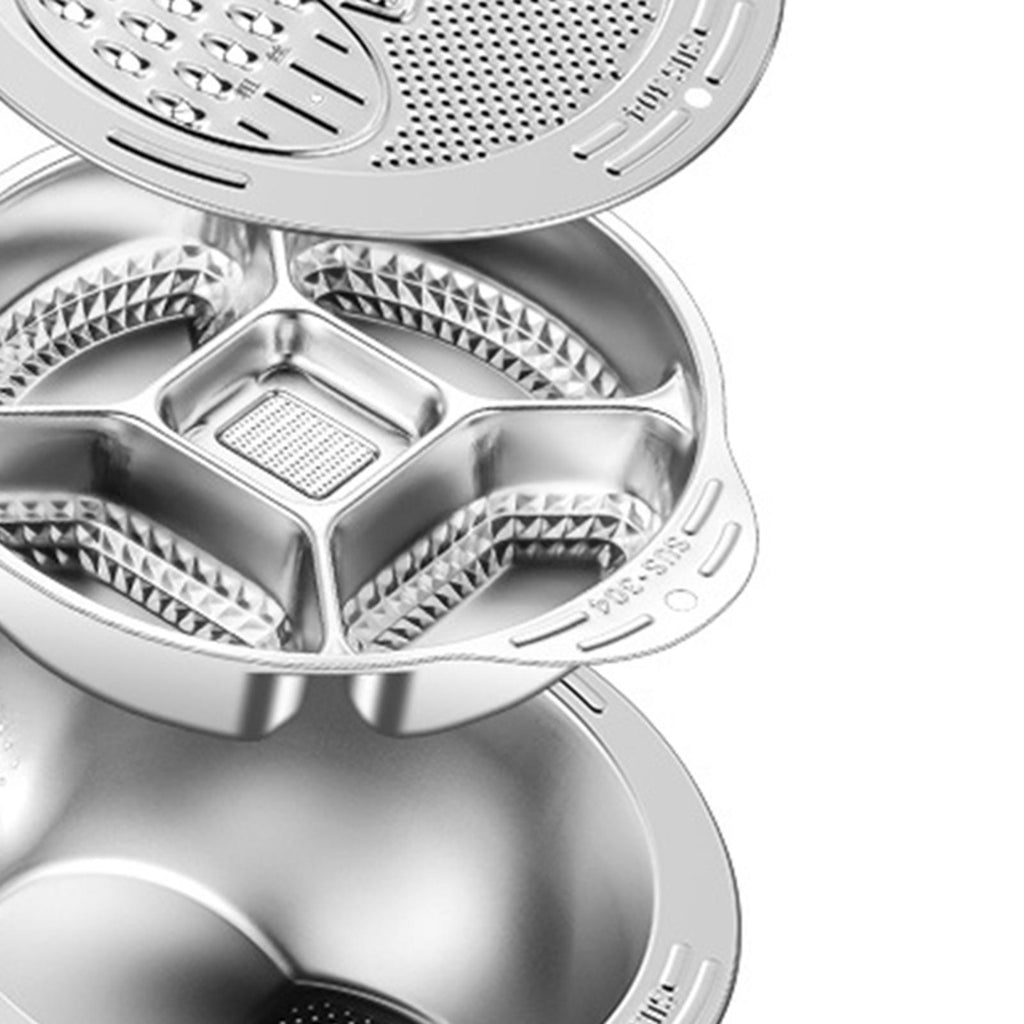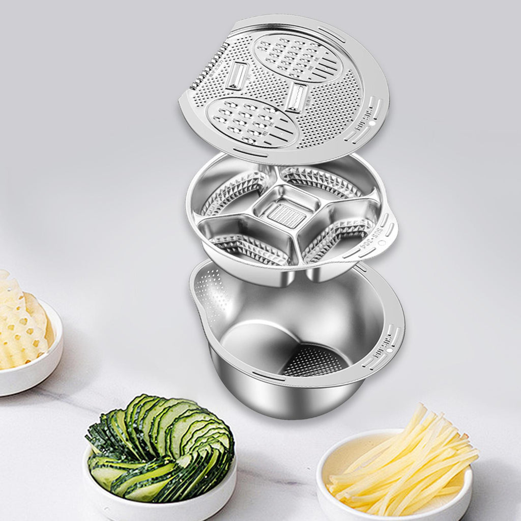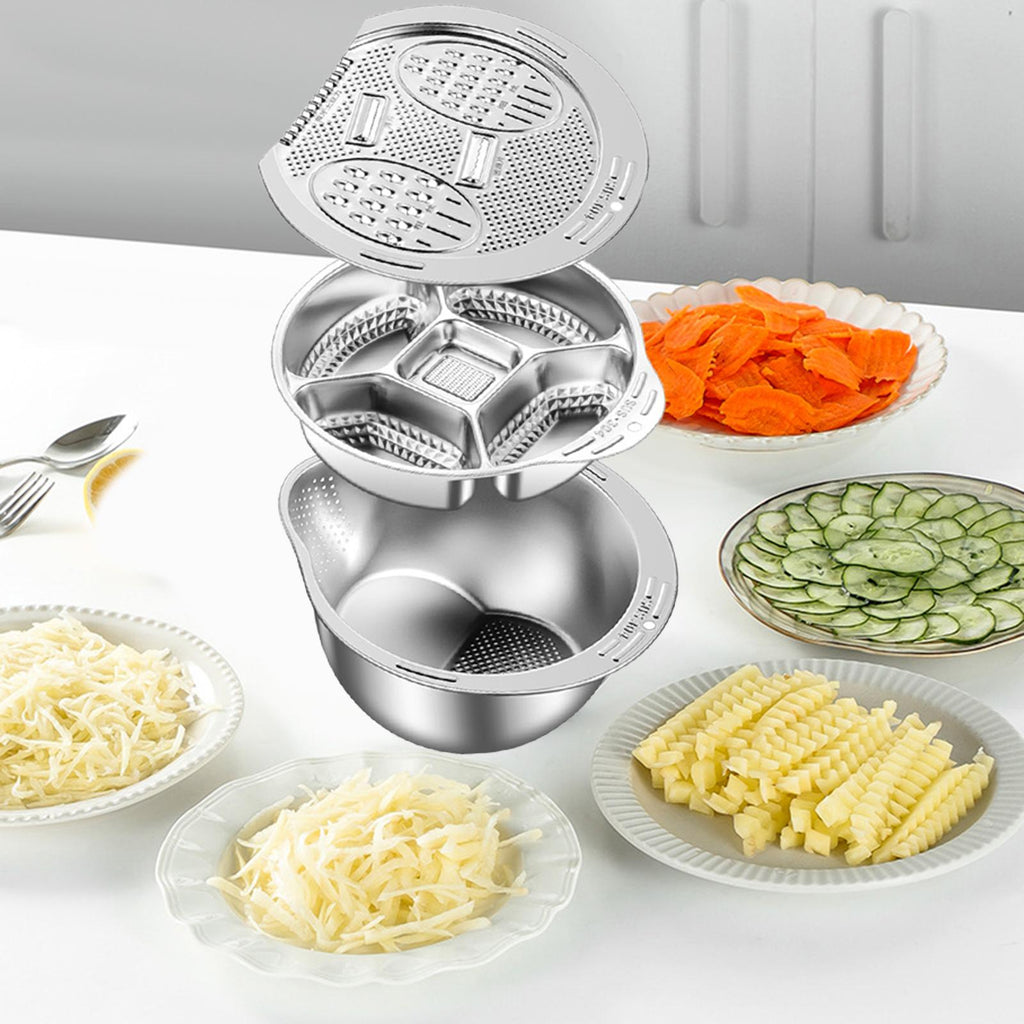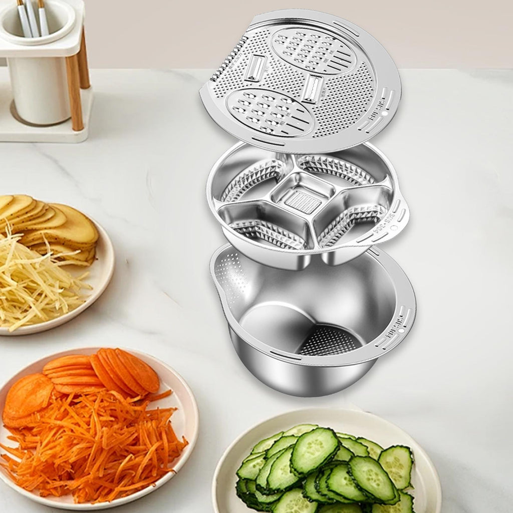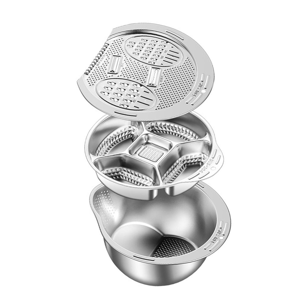 - 【Versatile 3 in 1 Design】: This practical stainless steel colander set combines a grater lid, Vegetable prep plate, and washing bowl in a space saving system for multiple kitchen tasks