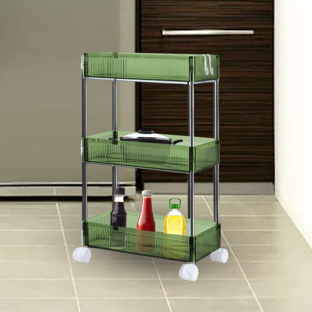Maxbell 3 Tier Rolling Storage cart Roller Rack for Kitchen Bedroom Hallway green