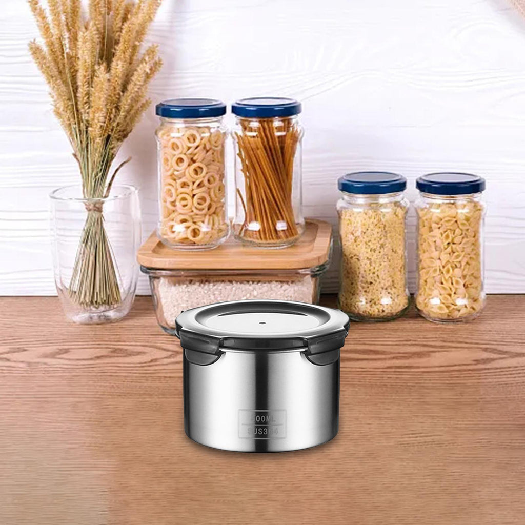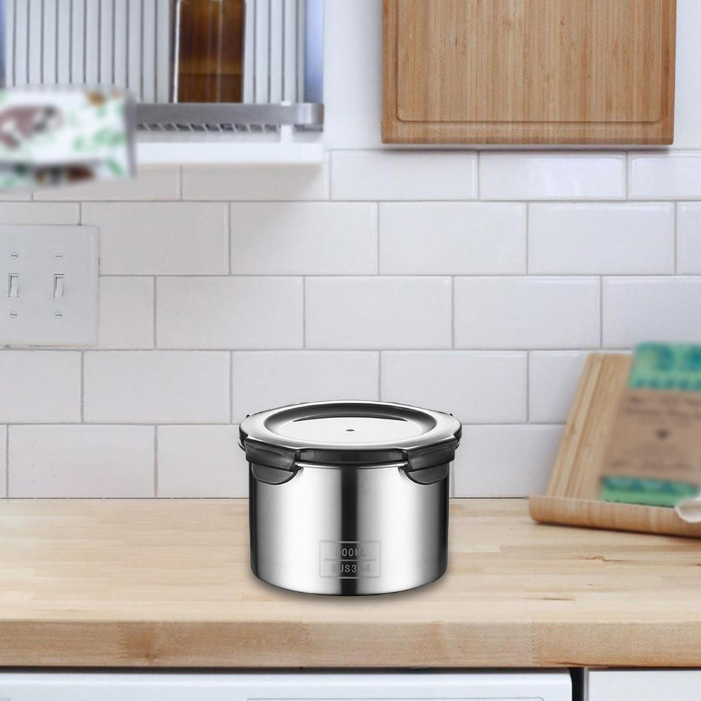 【Material】: Sealed food storage jar is made from 304 stainless steel, smooth inside and outer, sturdy and durable.