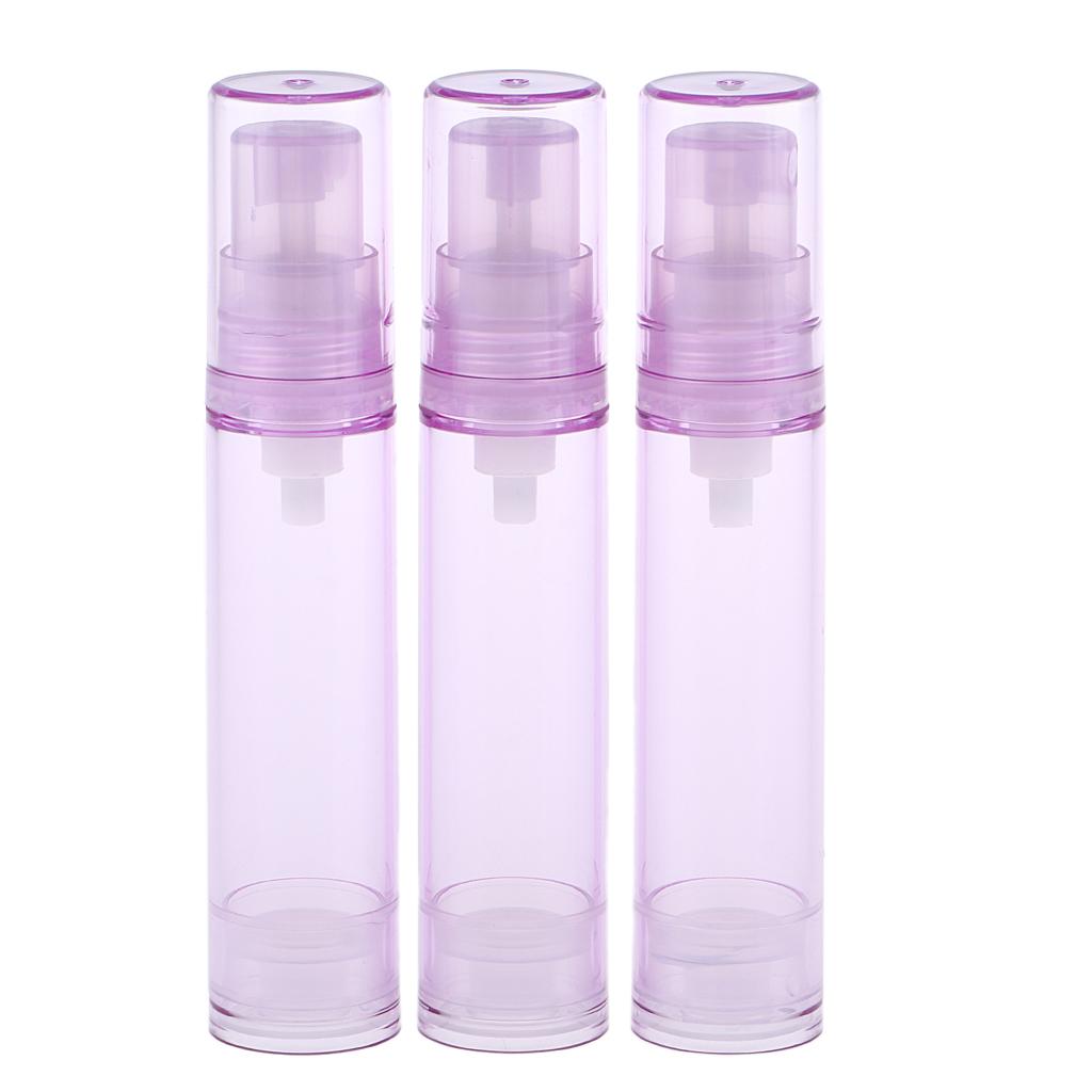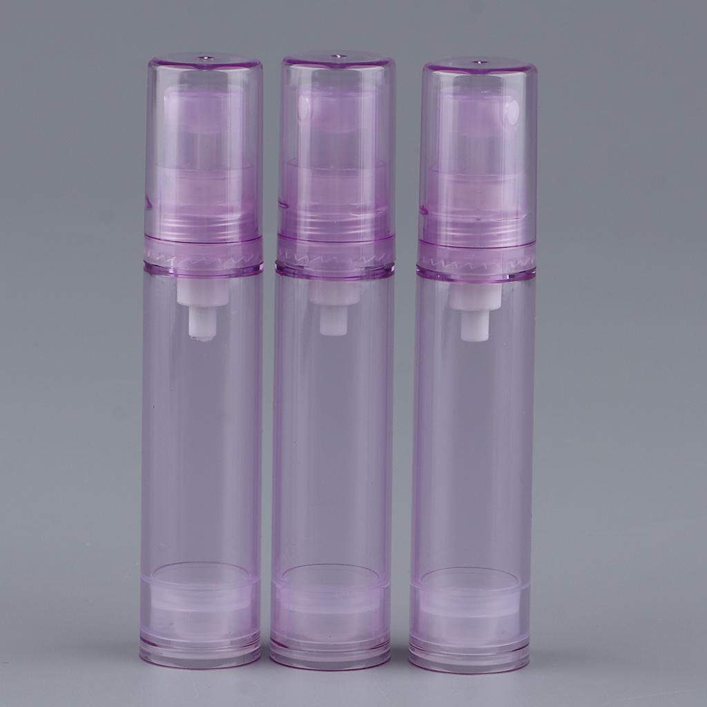 Maxbell 3Pcs 10ml Empty Airless Pump Bottles Refillable Cosmetic Containers Purple