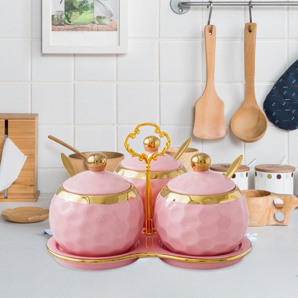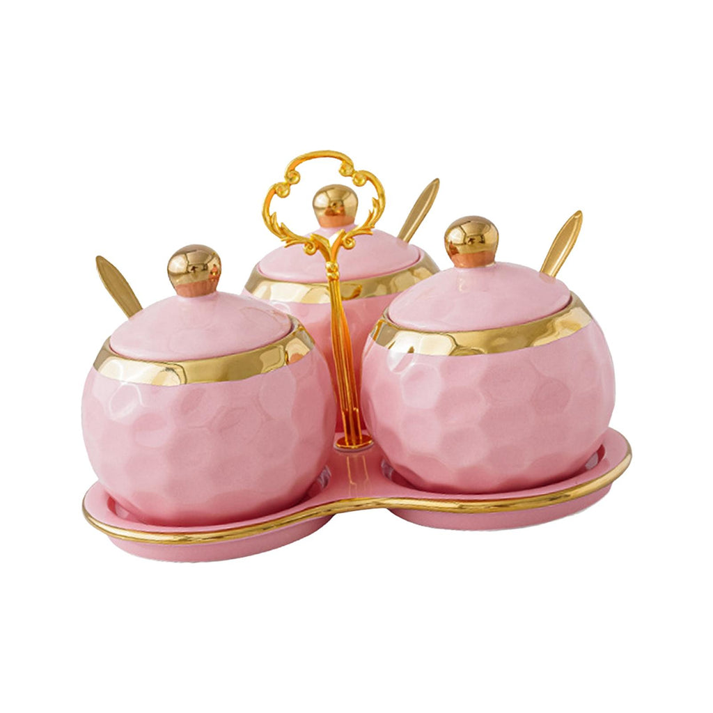 Maxbell 3Pcs Ceramic Spice Jars Condiment Jars for Restaurants Sugar Kitchen Counter Pink