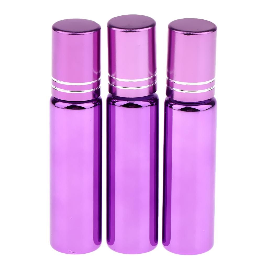 Maxbell 3x Empty Refillable Container Essential Oil Roller Bottles Vials 10ml Purple