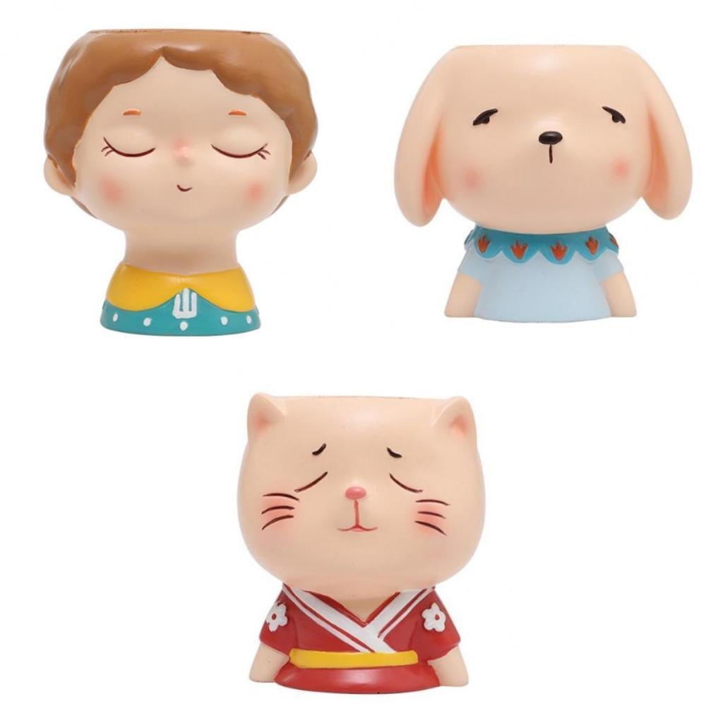 Maxbell 3x Resin Succulent Container Plant Pot Figurine Photo Props Decor