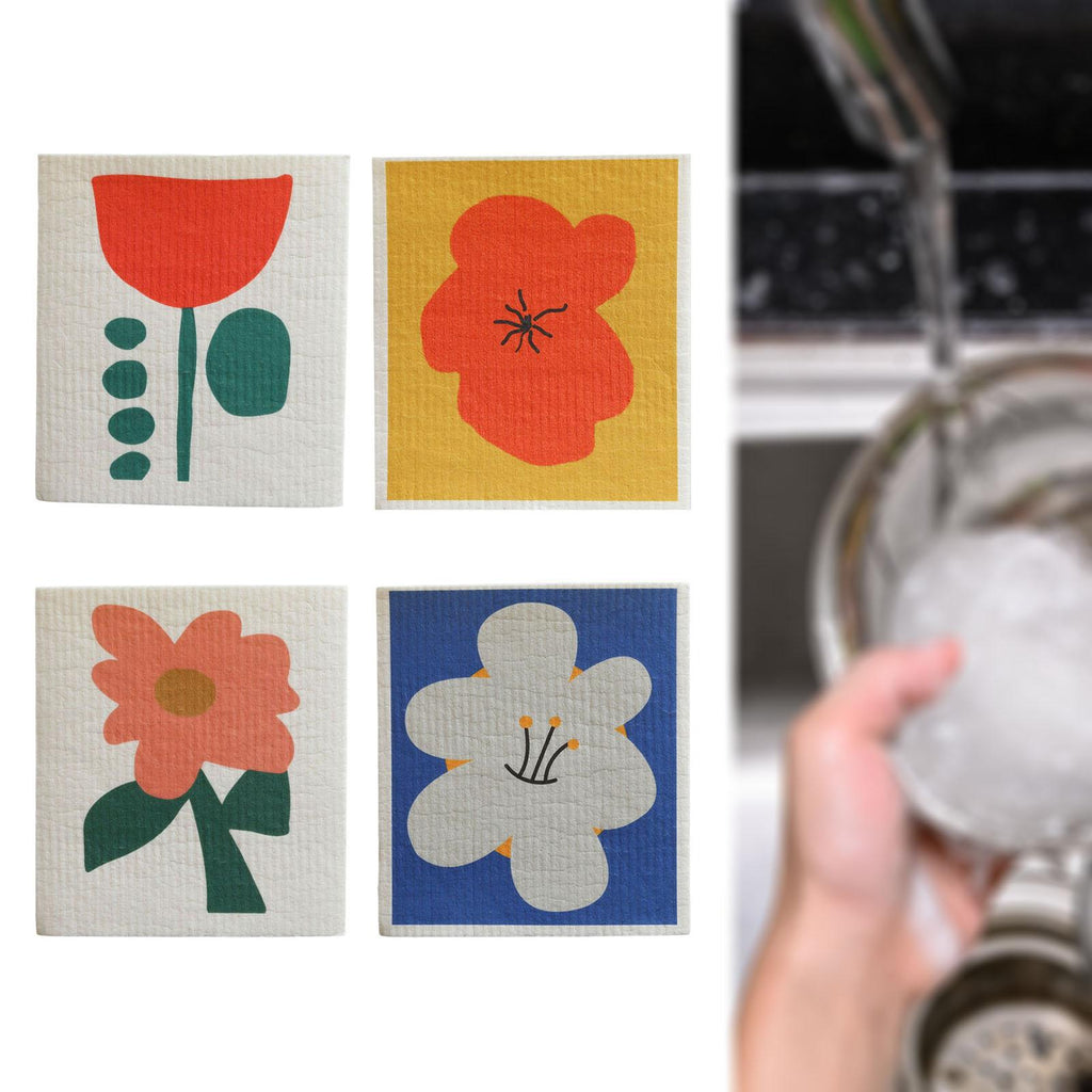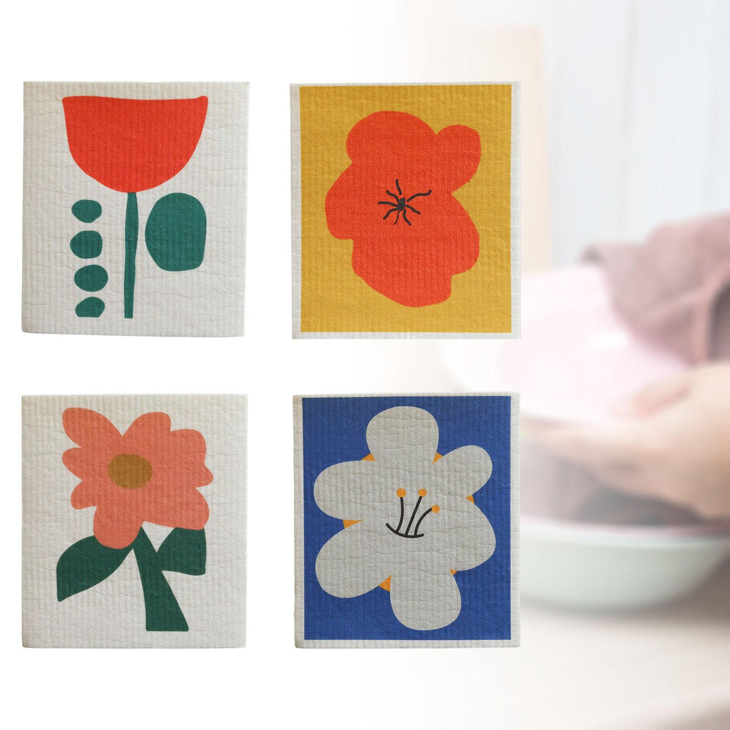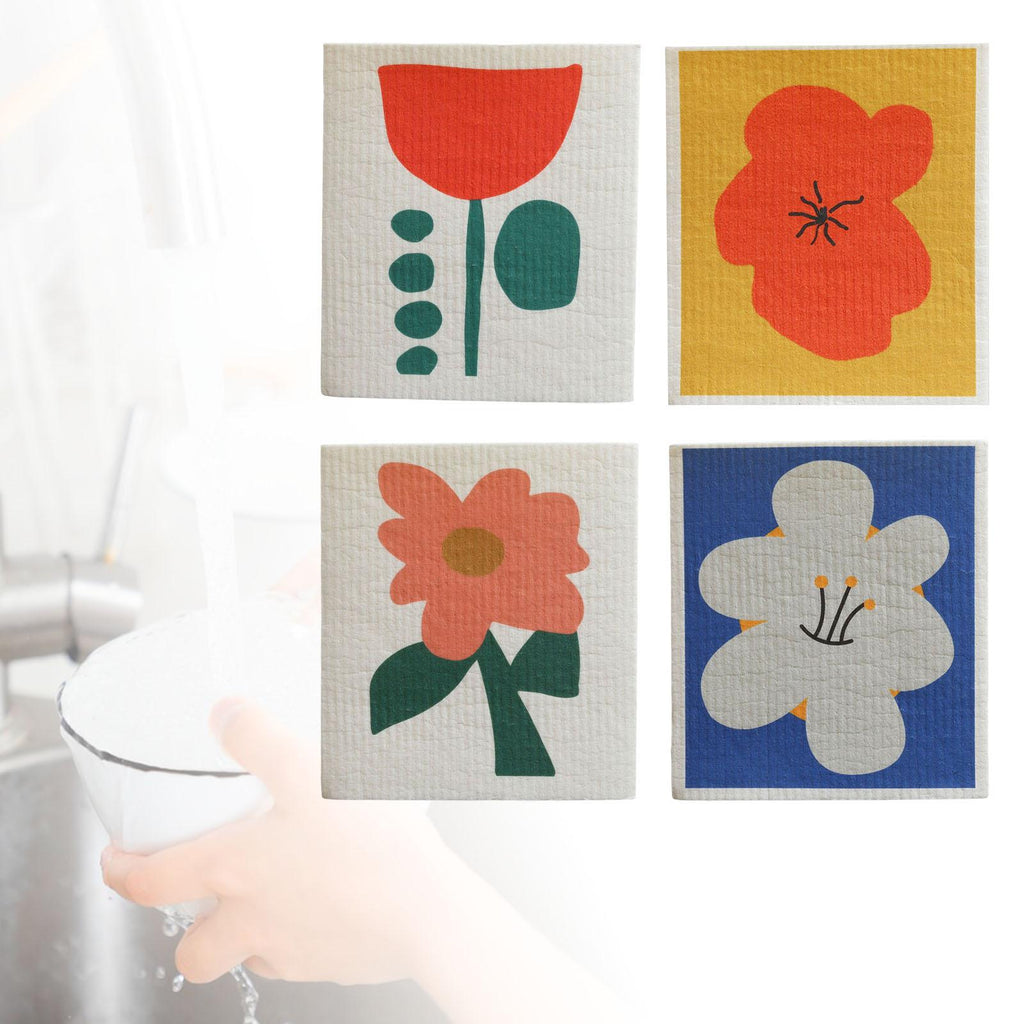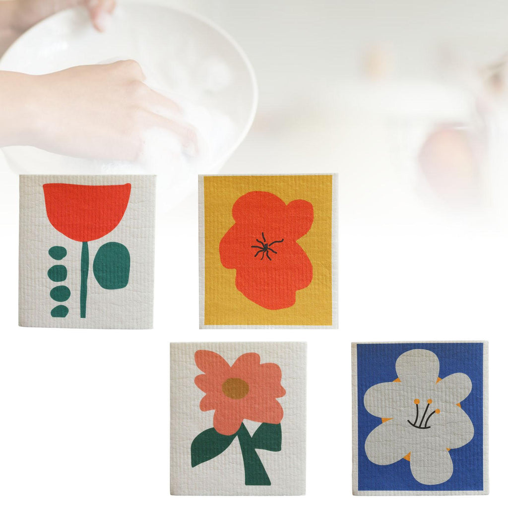 Maxbell 4 Pieces Non Woven Fabric Dish Cloths Absorbent Reusable for Dishes Kitchen Style B