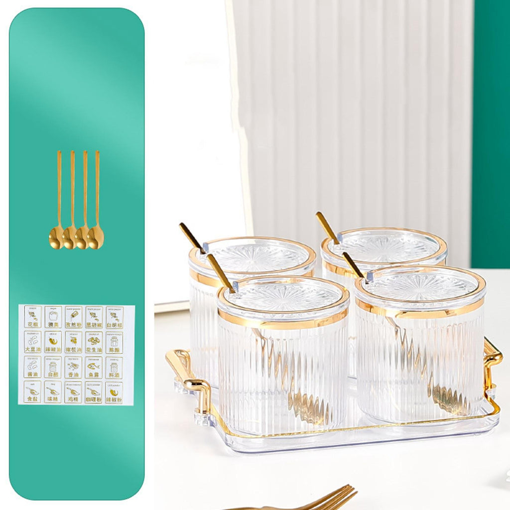 Maxbell 4Pcs Spice Bottle with Soon Seasoning Can Condiment for Kitchen Clear