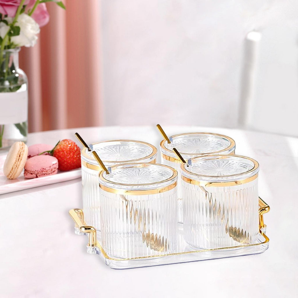 With Storage Tray. Seasoning bottle with acrylic tray, save space, easy and convenient to wash and clean.