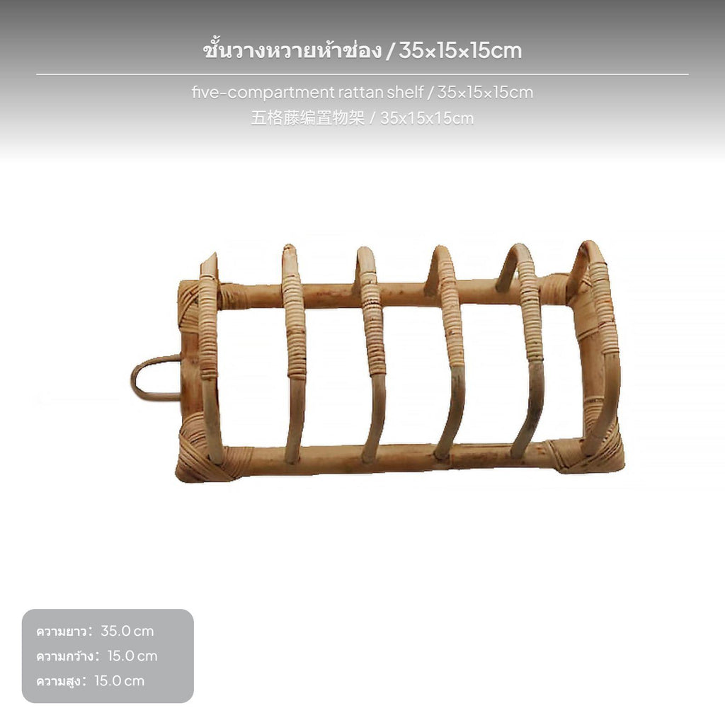 5-Compartment Rattan Organizer, Japanese design Storage Rack for Kitchen shelving unit