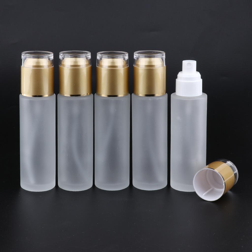 Max 5Pcs Glass spray Bottle Refillable Cosmetic Container Leakproof 80ml Golden