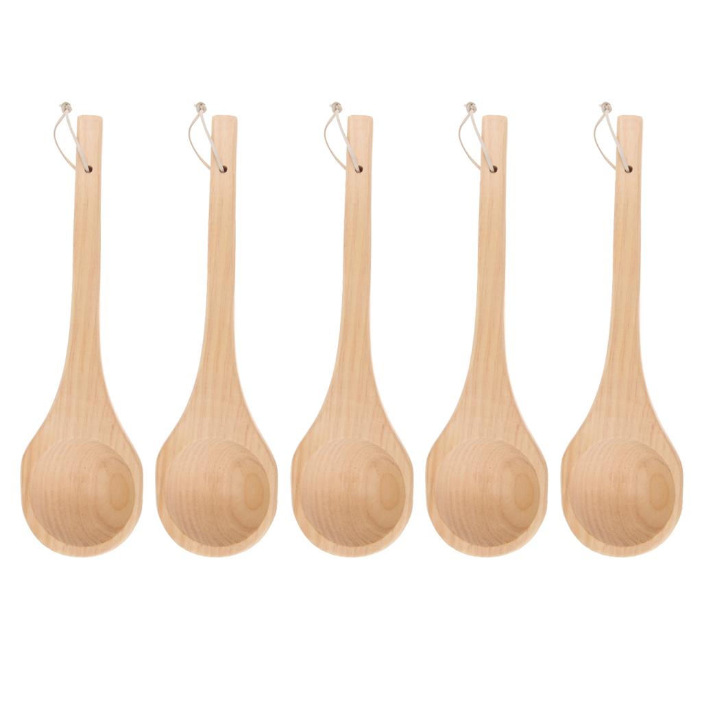 5Pcs Straight Long Handle Wooden Spoon Wooden Sauna Ladle Kitchen Soup Spoon