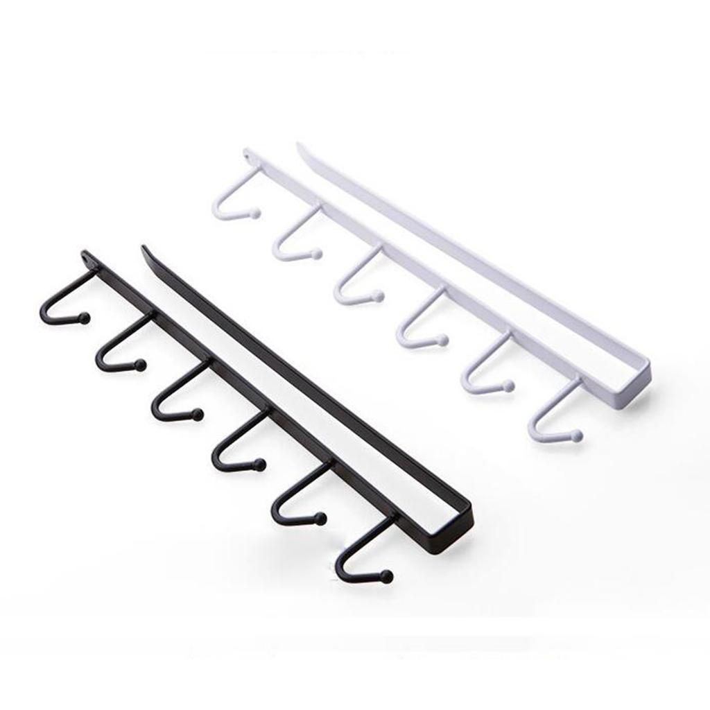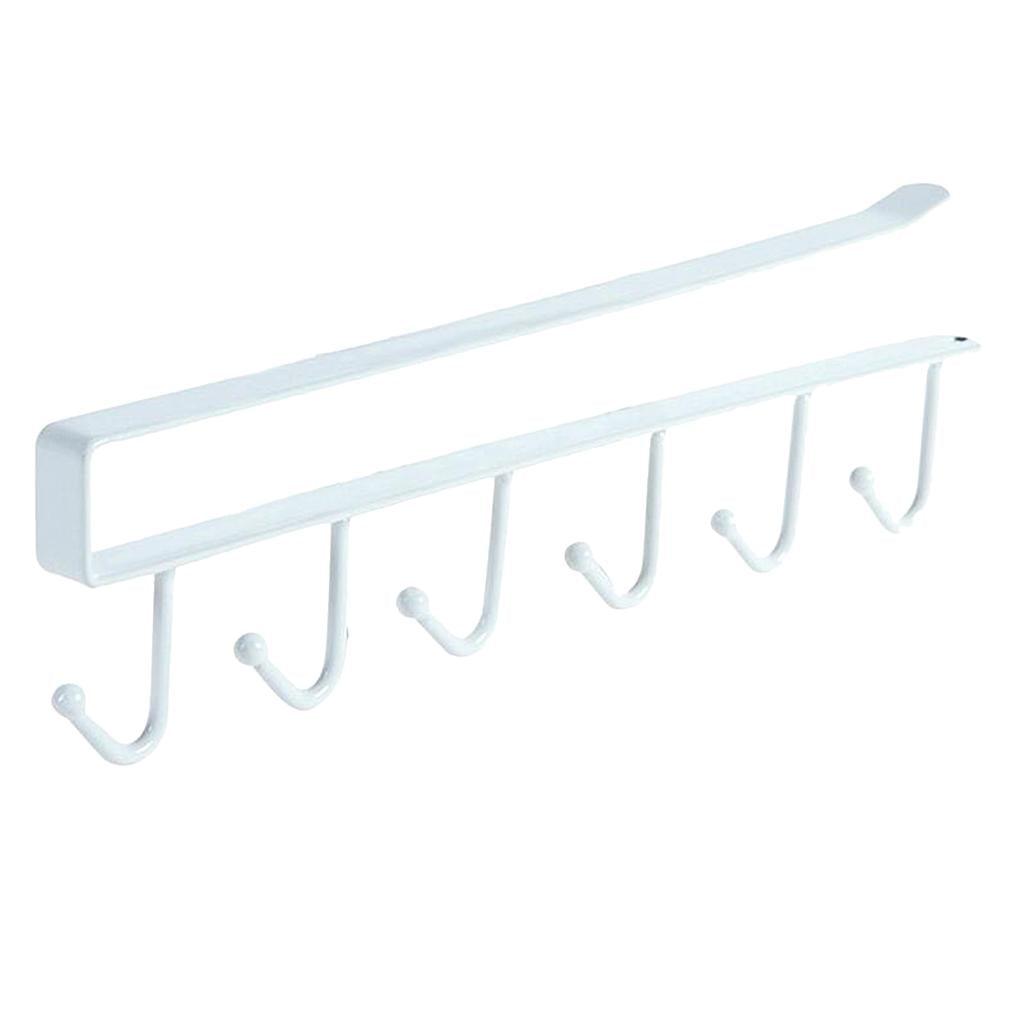 Maxbell 6 Hook Kitchen Under Shelf Cabinet Rack Mug Tea Cup Holder Storage Hook White