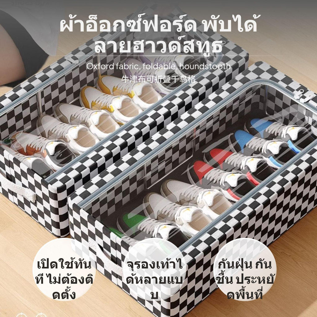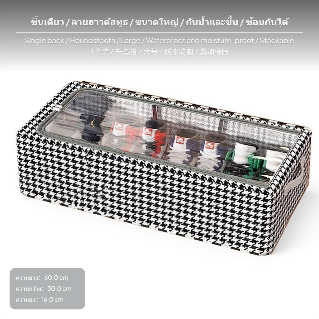 [Efficient Shoe Storage Solution] This 6-pack houndstooth footwear container combines timeless design with high capacity, made from premium oxford fabric and reinforced steel frame for stable organizing.[Waterproof & Moisture Protection] Provides dependable protection for all style of footwear against water and humidity, effectively preserving athletic shoes, boots, and high footwear.[Foldable & No Installation Needed] Flexible footwear storage container design supports foldable convenience—simply unfold and use, or collapse for quick storage; installation is completely unnecessary.[Transparent Top with effortless fastener] Locate and reach shoes quickly with the clear panel lid and effortless fastener closure, while preventing particles and dirt accumulation.[Space-Saving Versatility for Bedroom] Perfectly accommodates under beds and inside wardrobes, making it perfect for bedrooms, closets, or entryways; stackable design helps keep living areas tidy and organized.Specification: